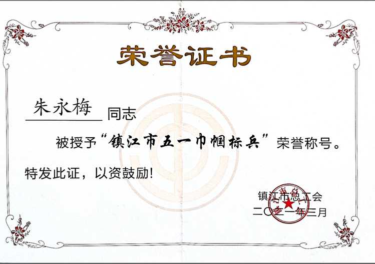 此次表彰,是為樹立先進典型凝聚榜樣力量,大力弘揚勞模精神、勞動精神和工匠精神,宣傳女職工在積極投身鎮江高質量發展建設中作出的巾幗貢獻,進一步激勵廣大女職工立足新時代、擔當新使命、彰顯新作為、展現新風采。全市共授予30名女同志“鎮江市五一巾幗標兵”稱號。