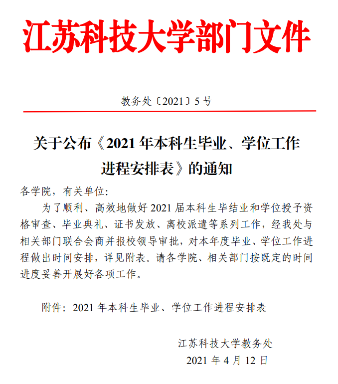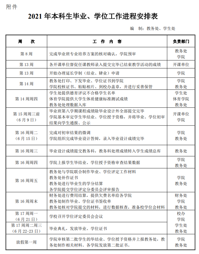 關于公布《2021年本科生畢業、學位工作進程安排表》的通知