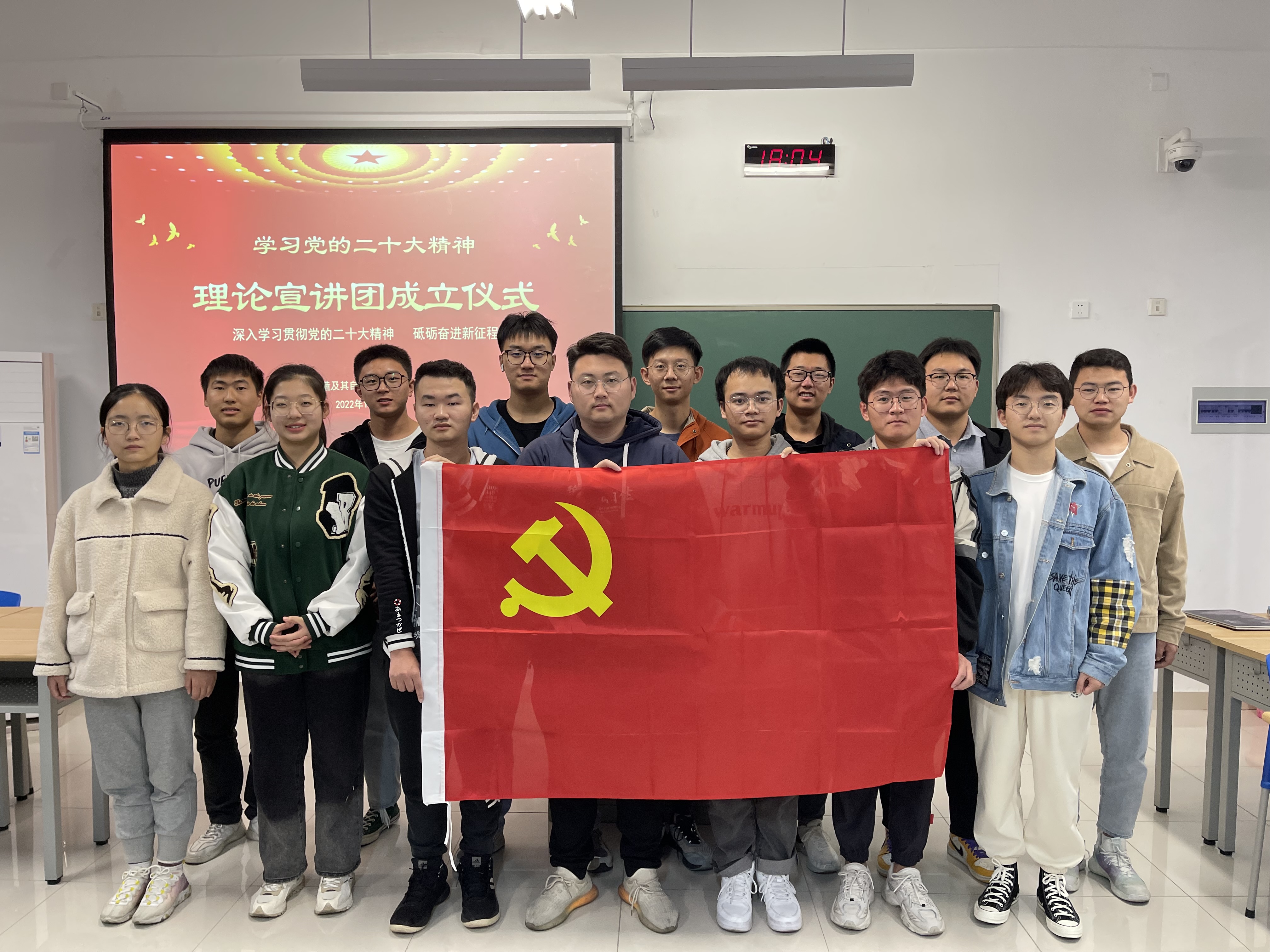 為扎實推進黨的二十大精神理論學習宣講工作,學習宣傳習近平新時代中國特色社會主義思想,宣傳黨的方針政策,以社會主義核心價值觀為引領,發展社會主義先進文化,弘揚革命文化,傳承中華優秀傳統文化。1026,機械設計制造及其自動化專業學生第一黨支部學習黨的二十大精神理論宣講團于明德樓104成功舉行成團儀式,支部全體黨員參加成團儀式。