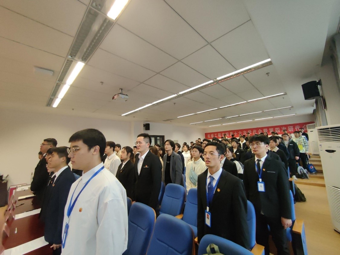 首先,進行大會第一項,由主持人周李君同學宣布江蘇科技大學機械工程學院第十六次學生代表大會、第四次研究生代表大會正式開始,合唱國歌,團歌。