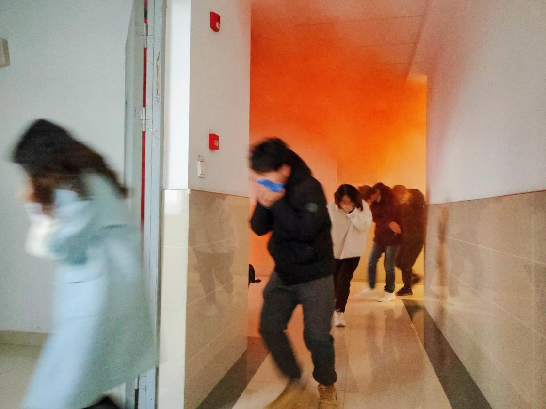 演習(xí)開(kāi)始前,保衛(wèi)處趙強(qiáng)老師向參與演習(xí)的老師同學(xué)講解基本消防知識(shí)、消火栓的正確操作方法,并介紹演習(xí)具體方案。隨著實(shí)驗(yàn)室三樓某設(shè)備間突然著火,走廊天井處涌出滾滾濃煙,警報(bào)聲響起,消防疏散滅火演練拉開(kāi)序幕。同學(xué)們?cè)谑枭⒅笇?dǎo)員的組織下,捂住口鼻、快速有序地從實(shí)驗(yàn)室向安全地帶疏散。整個(gè)疏散演練過(guò)程緊湊有序,達(dá)到了預(yù)期的效果。接著,在機(jī)械學(xué)院樓西側(cè)空地,師生代表在專業(yè)人員的指導(dǎo)下進(jìn)行滅火實(shí)操演練,每位同學(xué)按照滅火器規(guī)范操作流程,進(jìn)行了滅火操作。最后,保衛(wèi)處及學(xué)院領(lǐng)導(dǎo)對(duì)本次演習(xí)進(jìn)行總結(jié),對(duì)演習(xí)過(guò)程中存在的安全問(wèn)題進(jìn)行了反饋并提出進(jìn)一步要求,希望通過(guò)本次演習(xí),能夠使同學(xué)們?cè)鲩L(zhǎng)安全意識(shí),掌握基本逃生技能,為創(chuàng)建平安校園貢獻(xiàn)力量!