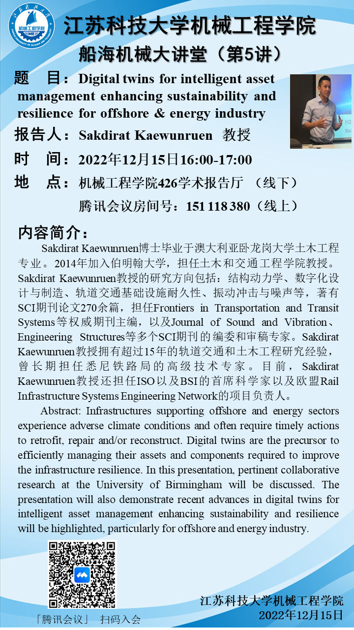 學術報告——Digital twins for intelligent asset management enhancing sustainability and resilience for offshore & energy industry
