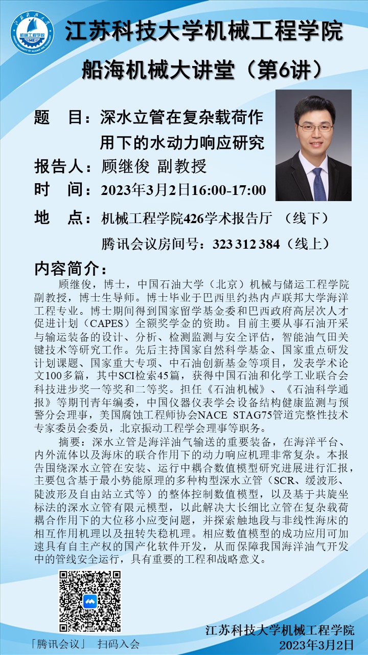 學術報告——深水立管在復雜載荷作用下的水動力響應研究