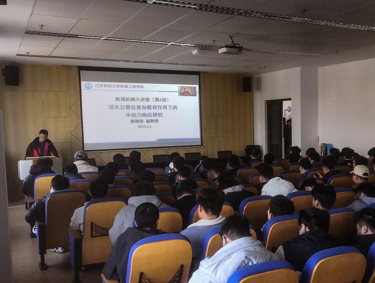 2023年3月2日下午,中國石油大學(xué)顧繼俊副教授應(yīng)邀以“深水立管在復(fù)雜載荷作用下的水動力響應(yīng)研究”為主題做了精彩的線上講座。機(jī)械工程學(xué)院黨委副書記、副院長(主持工作)張建主持了本次講座,機(jī)械工程學(xué)院青年教師、研究生在學(xué)院426學(xué)術(shù)報告廳或在線參加了講座。