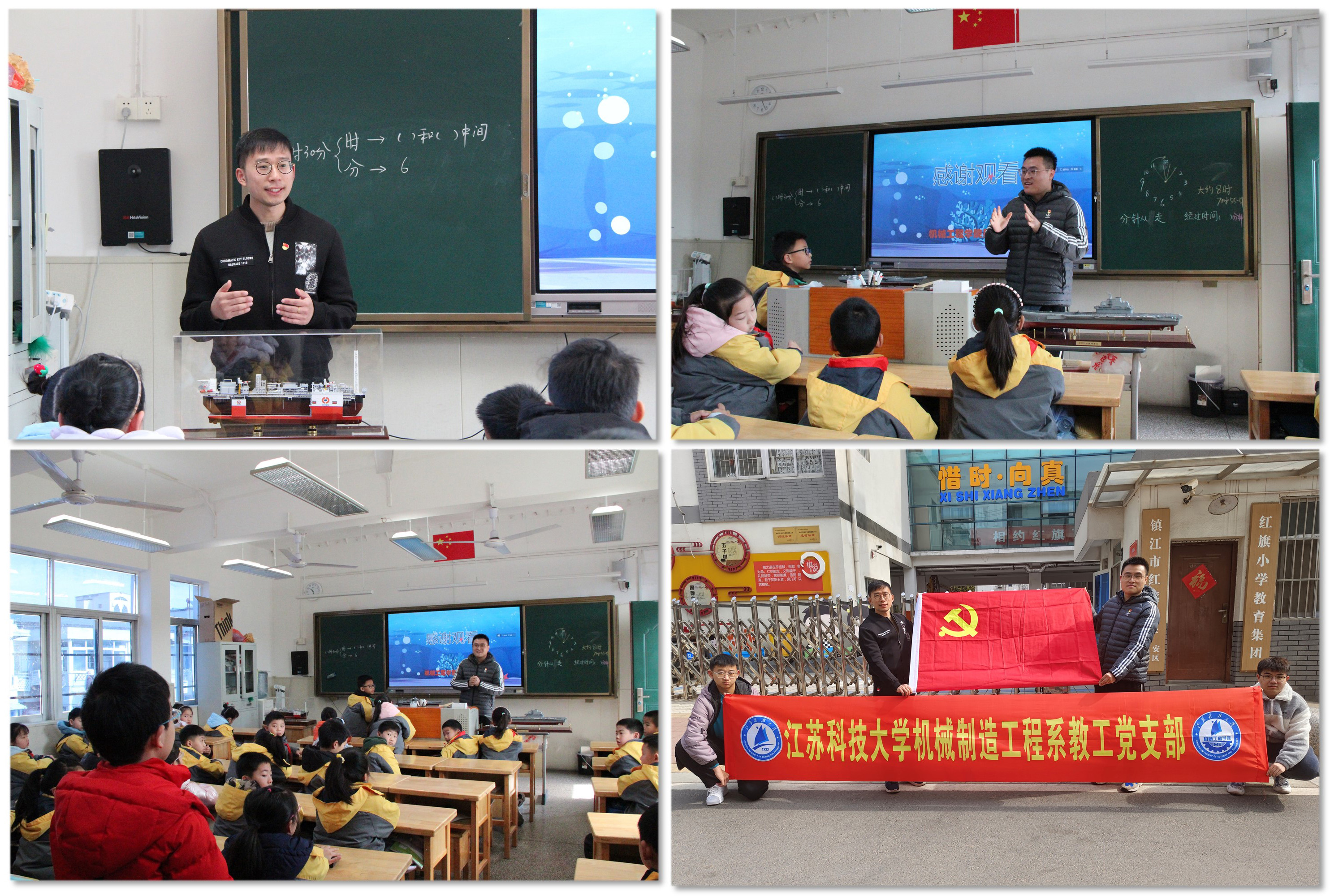 3月3日上午,機械制造工程系教工黨支部黨員孟祥祎、裴永勝來到鎮江市優質教育代表單位紅旗小學進行了一場義務宣講活動。此次活動在學院黨委領導和支部的組織下,以學習和踐行雷鋒同志先進事跡為出發點,開展面向中小學生的“征航四海,船進校園”主題科普活動,積極推動省級樣板黨支部的建設。課堂上,兩位博士充分結合自身所學,圍繞江蘇科技大學在我國幾十年波瀾壯闊的造船歲月征程,向孩子們講述了我國船海事業的艱辛與不屈,鼓勵大家從小勵志為中國夢而努力學習,得到了孩子們積極的響應。