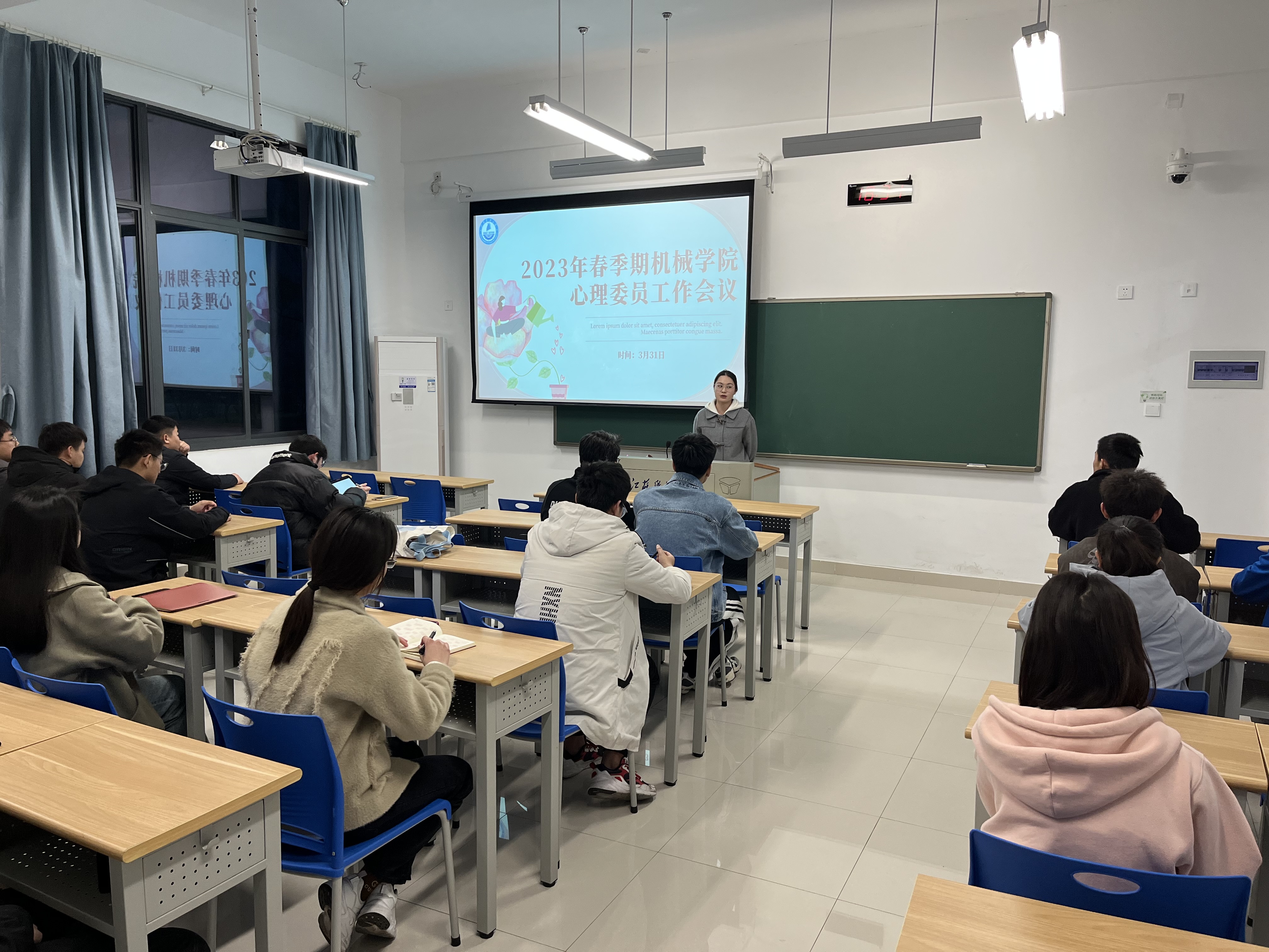 為更好地把握本科生春季期心理動態,有序推進學院心理健康教育工作,充分發揮心理委員的橋梁紐帶作用,機械工程學院于3月31下午日在經世樓104召開2023年春季學期心理委員工作會議。會議由心理輔導員譚靜主持,機械工程學院全體心理委員參加會議。