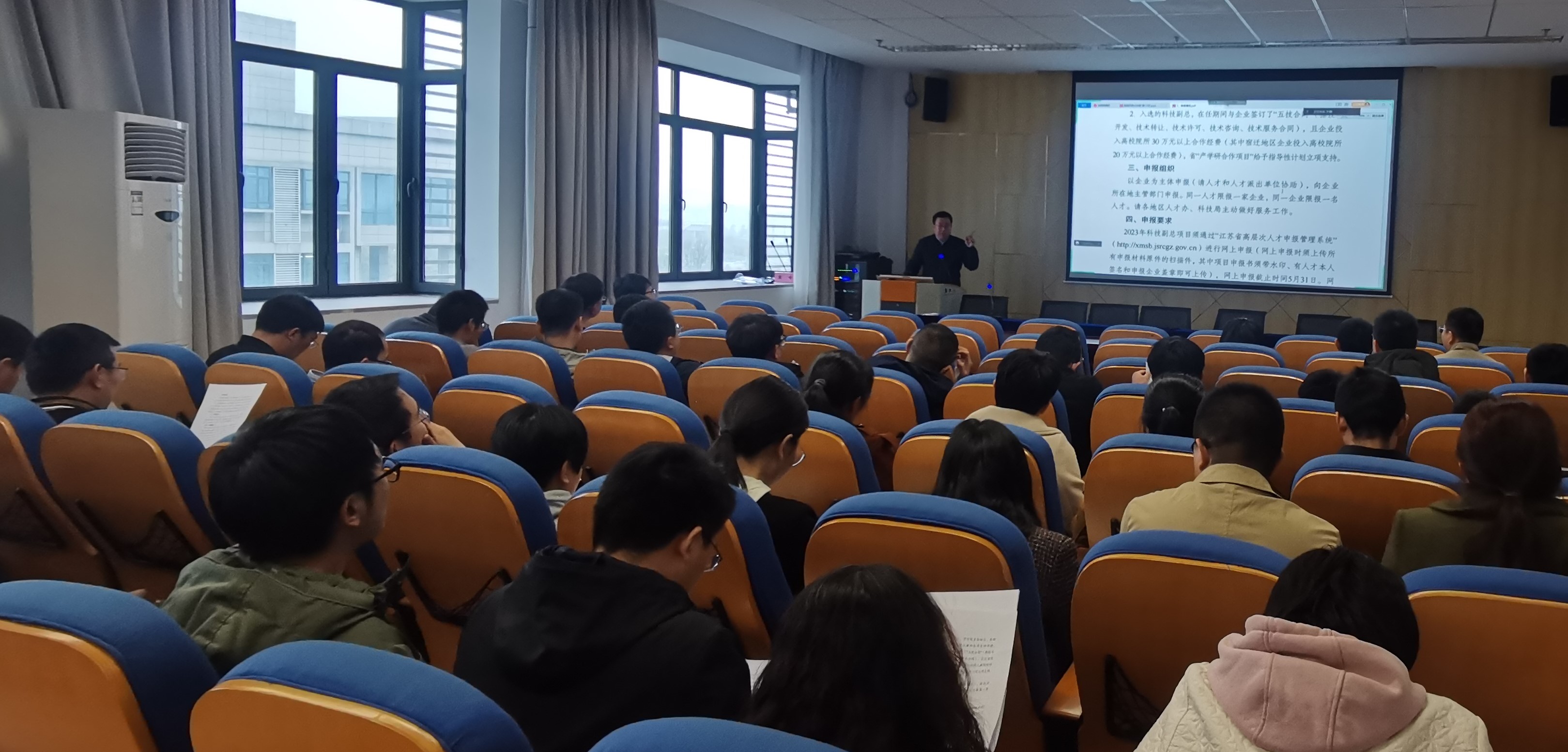 許科長(zhǎng)首先介紹了近幾年江蘇科技大學(xué)在科技副總及產(chǎn)學(xué)研項(xiàng)目取得的成績(jī),進(jìn)而詳細(xì)講解了科技副總申報(bào)的政策導(dǎo)向、支持重點(diǎn)、申報(bào)要求和申報(bào)材料等,詳細(xì)闡述申請(qǐng)書填報(bào)的要點(diǎn)和注意事項(xiàng),并結(jié)合我??萍几笨偵陥?bào)的實(shí)際案例進(jìn)行專業(yè)剖析。同時(shí),許科長(zhǎng)詳細(xì)講解申報(bào)產(chǎn)學(xué)研項(xiàng)目的三種途徑、申報(bào)時(shí)間、流程及注意事項(xiàng)等。許科長(zhǎng)表示,科技副總和產(chǎn)學(xué)研項(xiàng)目申報(bào)是促進(jìn)教師個(gè)人科研總量提升的有效途徑,技術(shù)開發(fā)科將搭好平臺(tái)、助跑教師科研工作。