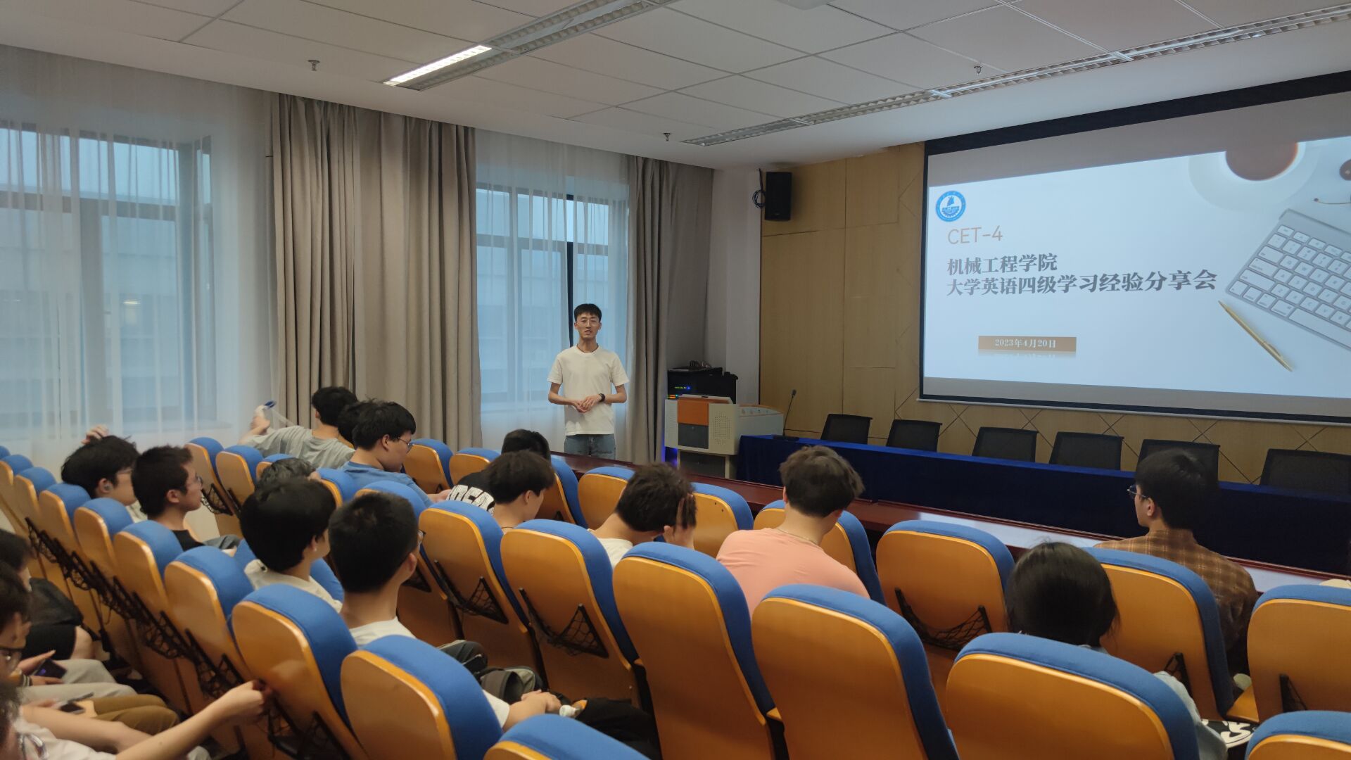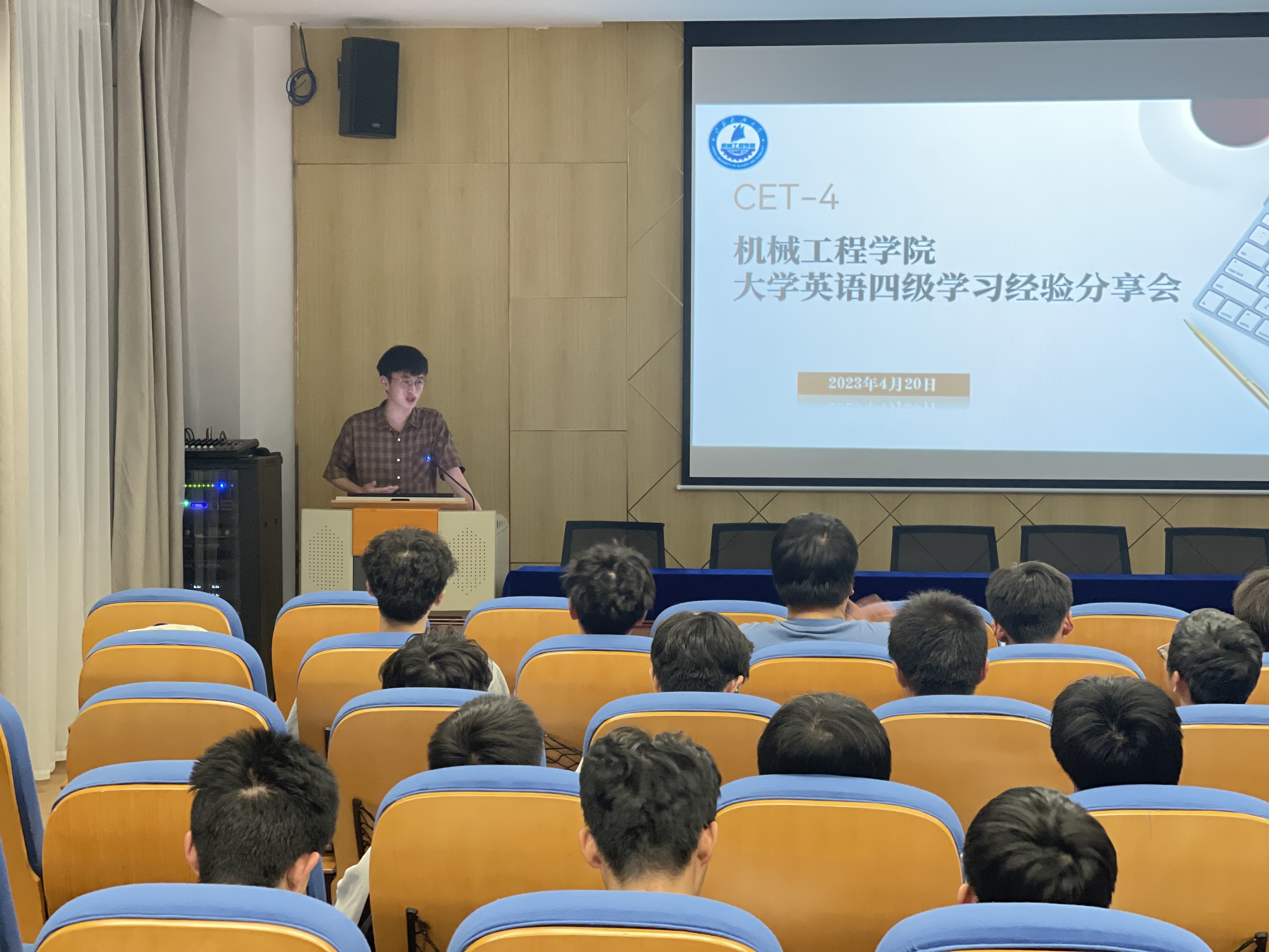 為提高同學們學習英語的積極性,幫助學生順利通過全國大學英語四級考試,4月20日晚,機械工程學院在機械樓426報告廳舉辦大學英語四級經驗分享會。本次會議由輔導員李福來主持,特別邀請任靜蘭和王平昶兩位同學為大家分享四級備考經驗。