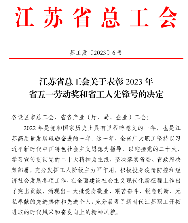 4月27日,江蘇省總工會下發(fā)《關(guān)于表彰2023年省五一勞動獎(jiǎng)和省工人先鋒號的決定》(蘇工發(fā)﹝2023﹞6號)文件,對過去一年愛崗敬業(yè)、艱苦奮斗、銳意創(chuàng)新、無私奉獻(xiàn)的先進(jìn)集體和先進(jìn)個(gè)人進(jìn)行表彰。我校機(jī)械工程學(xué)院被評為“江蘇省工人先鋒號”。