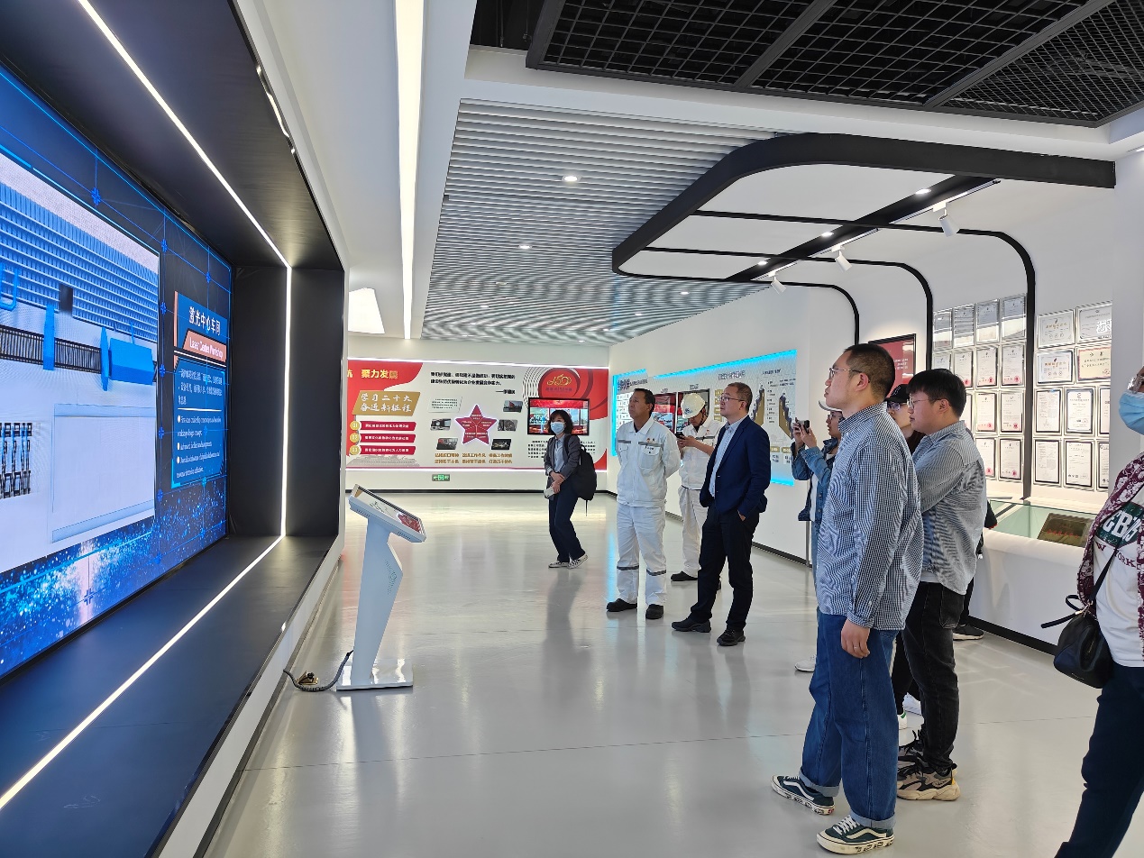 隨后,招商重工董主任帶隊參觀了招商局重工(江蘇)有限公司展覽館,從整體上感受招商局重工的產品結構及布局。接下來在碼頭參觀招商局重工生產的海洋鉆井平臺、貨物運輸船等大型在建設備,工作人員就海洋平臺的升降機構、拖鏈、液壓動力等方面進行相關講解。針對與機械設計聯系密切的船舶結構、焊裝工序以及LNG儲氣罐結構、保溫層設計結構等方面,青年博士與技術人員進行細致地探討。