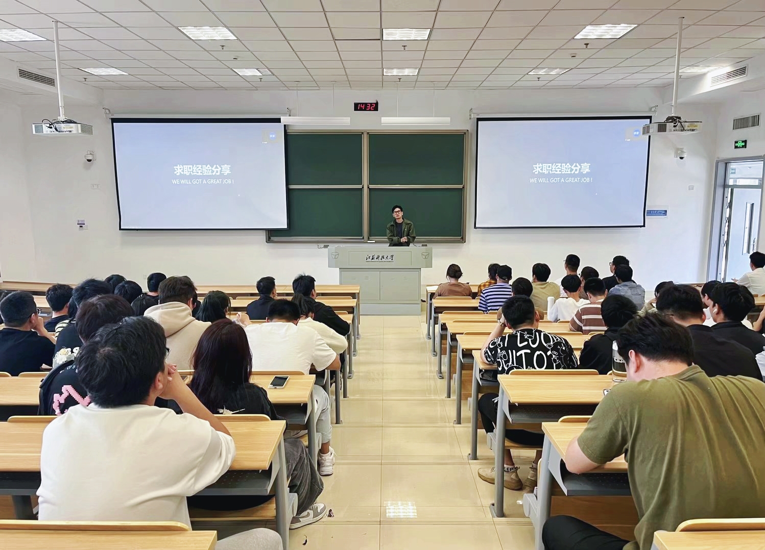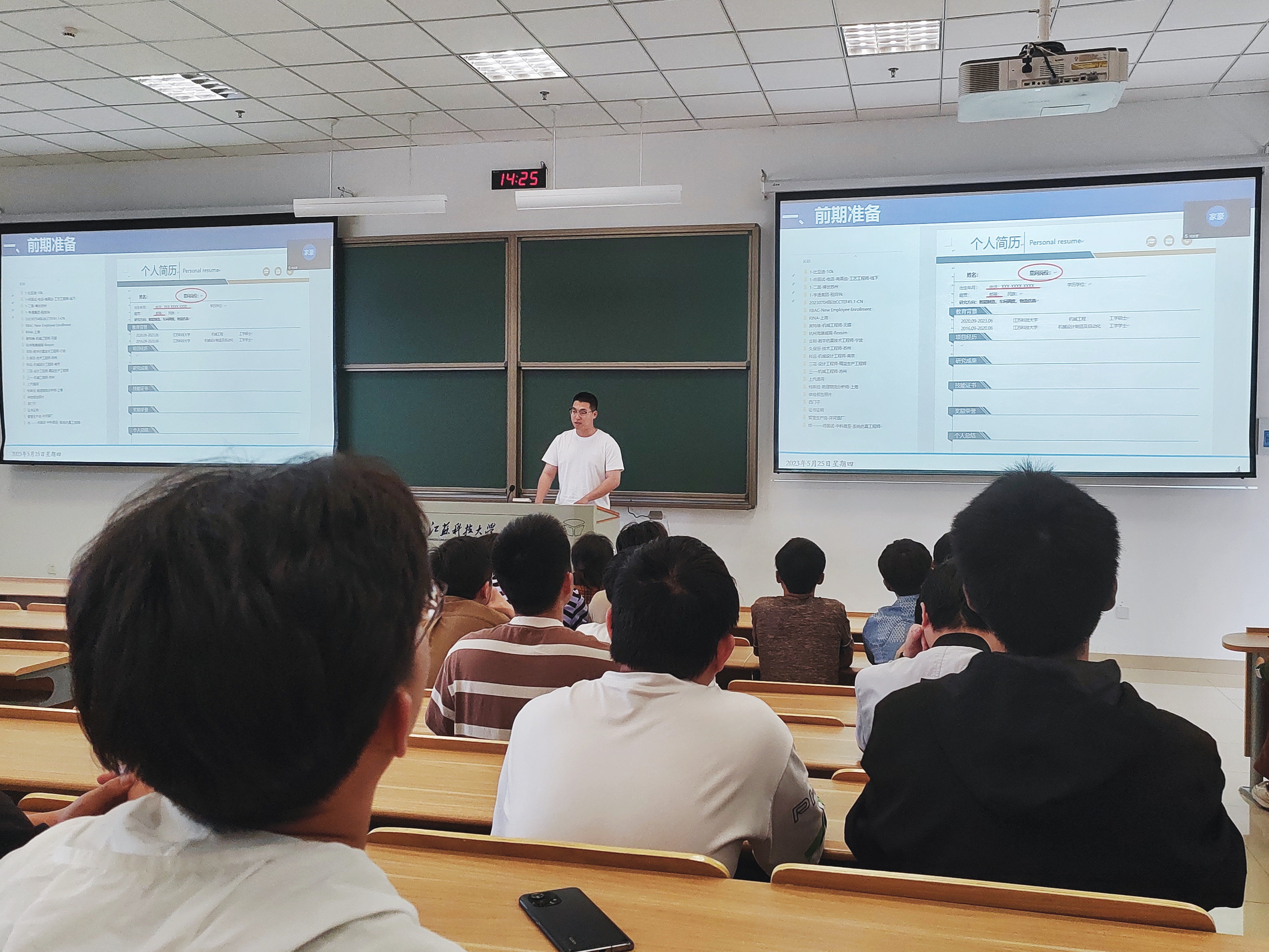趙俊杰同學簽約中船708研究所,他詳細講述了自己從簡歷制作到參加筆試、面試到簽約的一系列過程,并分享了查找招聘信息的渠道;楊家豪同學主要分享了自己求職中石化的時間安排和參考資料;陳冶同學簽約博世汽車部件有限公司,他主要介紹了自己求職的準備工作,包括了解公司、修改簡歷、準備英文自我介紹等,并分享了自己制作簡歷的經驗,強調簡歷要突出重點,展現自己的最大優勢;王學銳同學跨專業考取交通銀行,他告誡同學們一定要先明確自身優劣勢,盡早確定求職目標,全力準備;王榮濤同學簽約中船704研究所,他分享了自己面試研究所的經歷,并強調參與項目與實習經歷的重要性。此外,各位學長們都強調了科研經歷的重要性,告誡同學們要努力鍛煉自己的科研能力,提高自己的競爭優勢。在最后的自由提問環節,同學們就求職備考的注意事項等問題進行積極詢問和互動。
