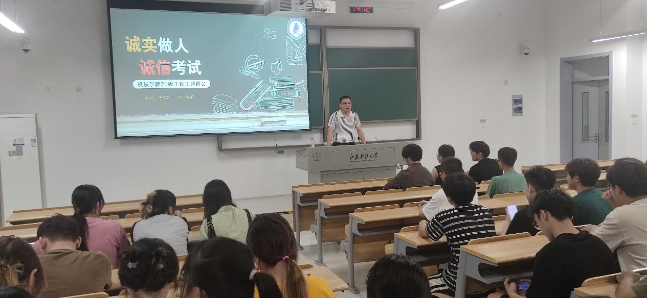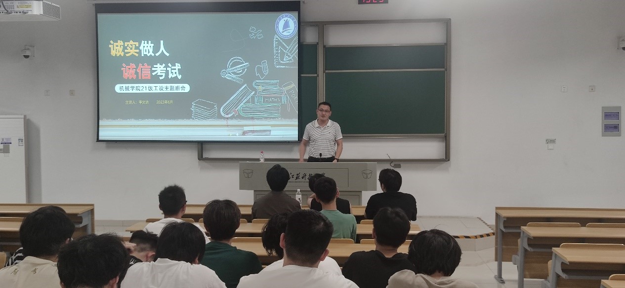 期末考試臨近,為提高學(xué)生的誠(chéng)信考試意識(shí),機(jī)械工程學(xué)院輔導(dǎo)員李文達(dá)為2021級(jí)工業(yè)設(shè)計(jì)專業(yè)的同學(xué)們,于6月5日,在明德樓102教室組織開展了一次“誠(chéng)實(shí)做人·誠(chéng)信考試”的主題班會(huì),21級(jí)工業(yè)設(shè)計(jì)專業(yè)全體學(xué)生參加。