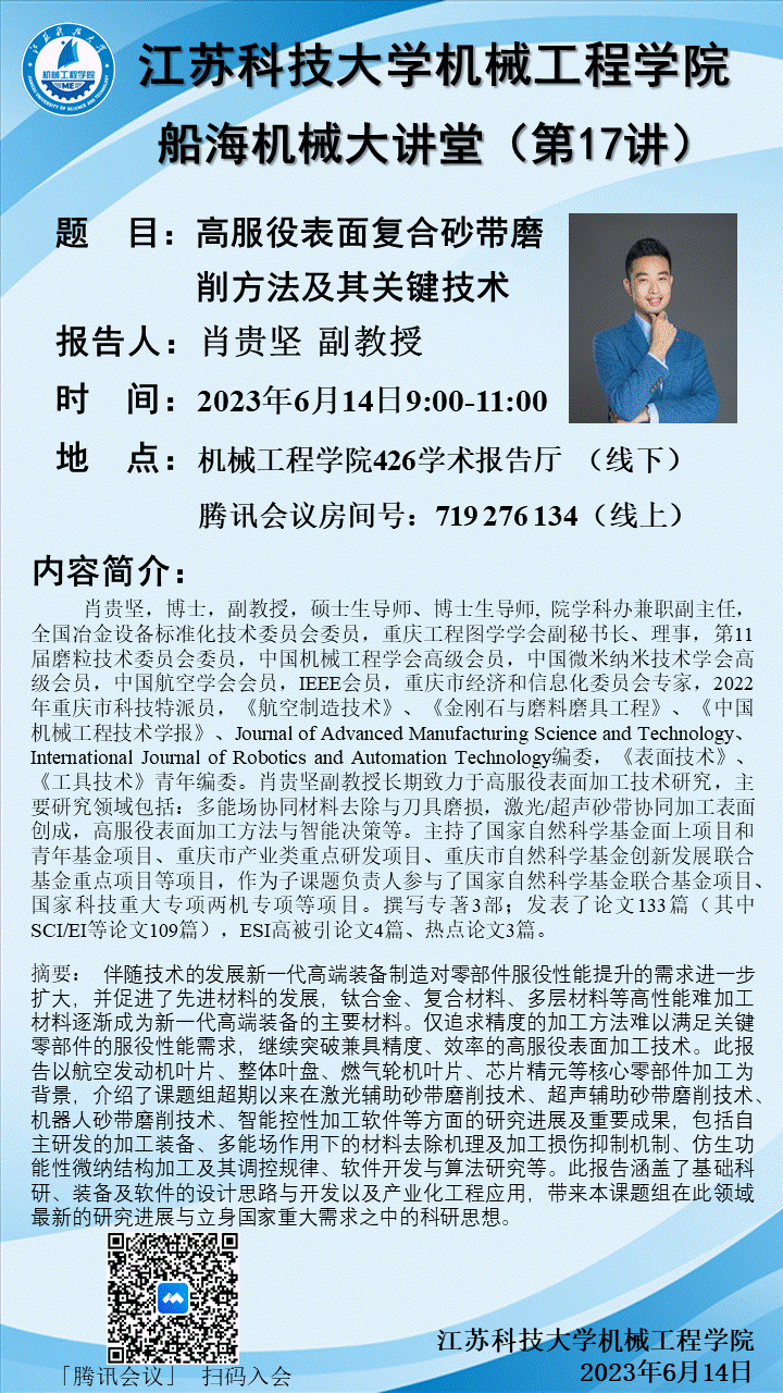 學(xué)術(shù)報告——高服役表面復(fù)合砂帶磨削方法及其關(guān)鍵技術(shù)