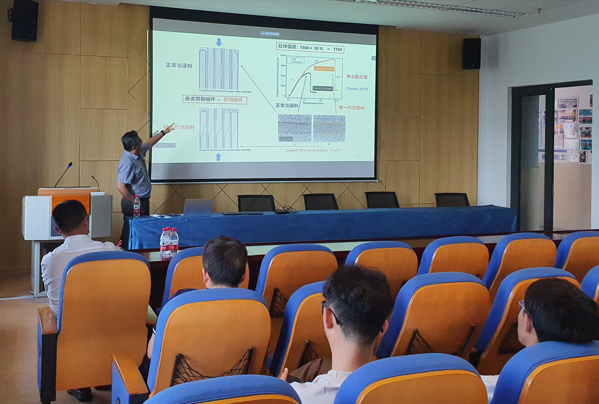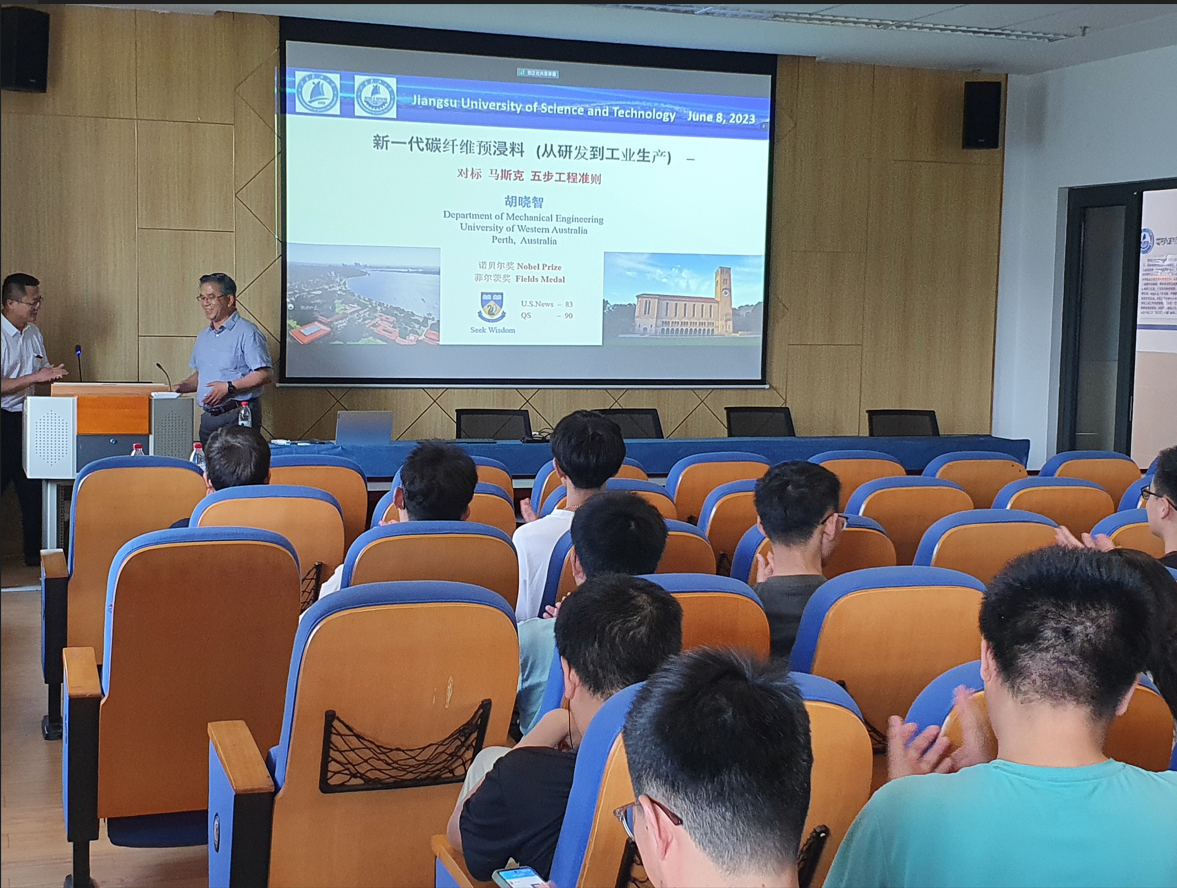 會上,胡曉智教授針對師生提出的“如何將增強纖維均勻分布在復合材料層間”、“碳纖維預浸料的制造流程”等問題做出了詳細的回答,并表示歡迎師生到西澳大利亞大學交流訪問,獲得了師生們的陣陣掌聲。