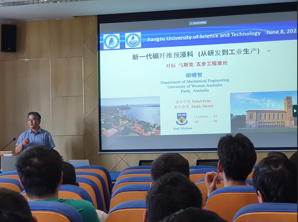 2023年6月8日下午,西澳大利亞大學胡曉智教授應邀以“新一代碳纖維預浸料(從研發到工業生產)”為主題做了精彩的線上講座。機械工程學院黨委副書記、副院長(主持工作)張建主持了本次講座,機械工程學院青年教師、研究生在學院426學術報告廳或在線參加了講座。