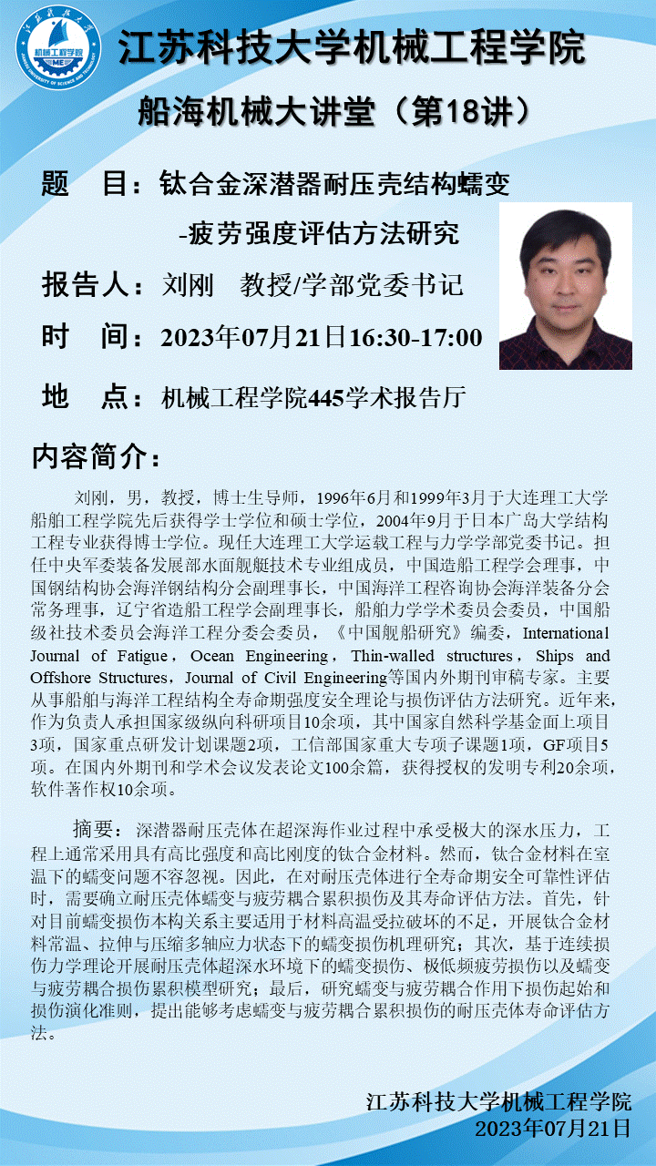 學術報告——鈦合金深潛器耐壓殼結構蠕變-疲勞強度評估方法研究