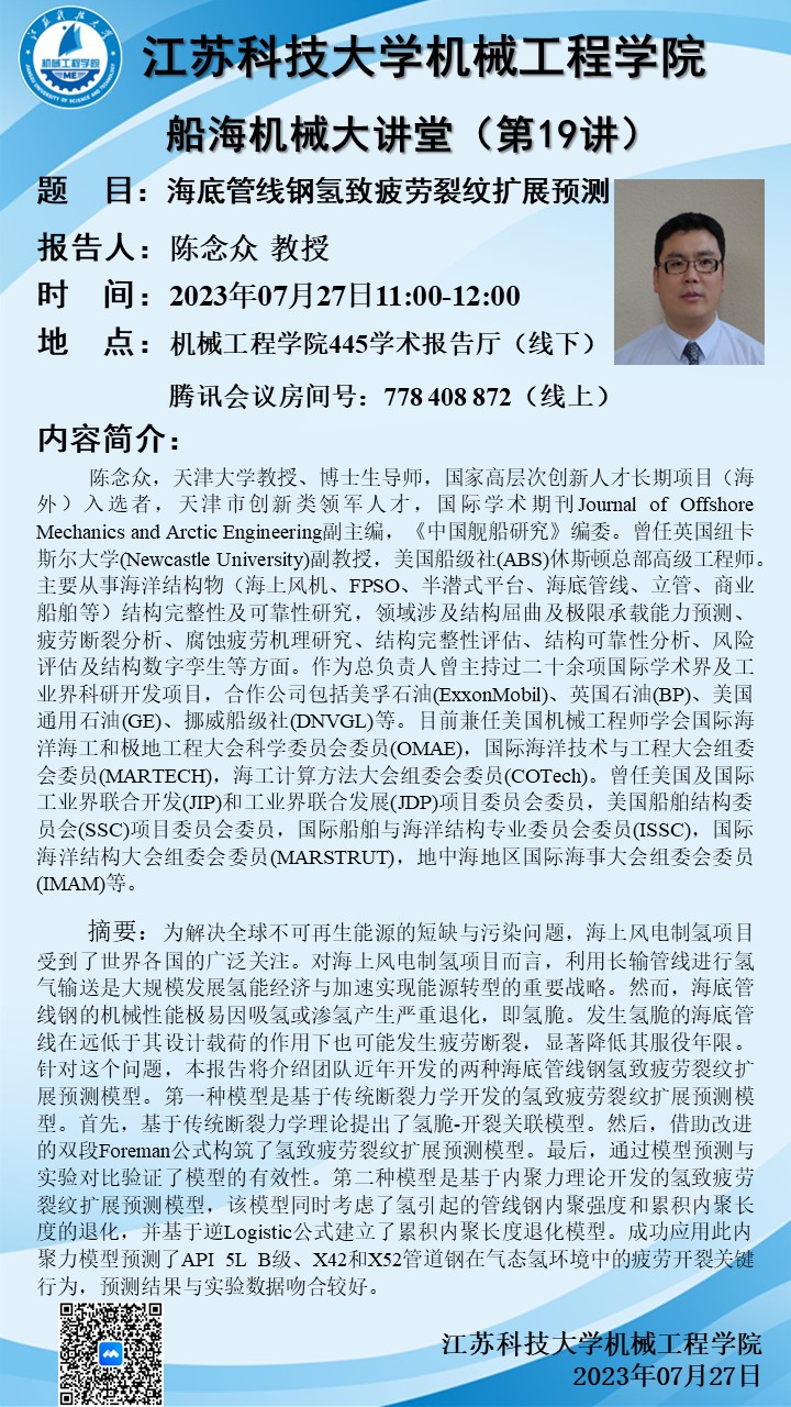 學術報告——海底管線鋼氫致疲勞裂紋擴展預測