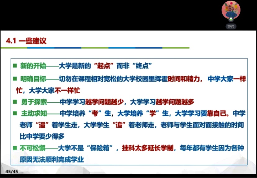 會上,鐘偉教授首先從學院概況、學科隊伍、學科平臺、科研團隊與典型成果、科研項目與科研成果等多方面對機械工程學院進行了詳細的講解。之后又對機械大類細分專業(yè)進行了詳細解讀,包括大一結(jié)束后的專業(yè)分流、各專業(yè)就業(yè)方向、專業(yè)發(fā)展歷史等,同時結(jié)合機械工程學院當前人才培養(yǎng)模式對學院的培養(yǎng)方案和育人成效進行了展示。最后,鐘偉教授表示大學是新的“起點”而非“終點”,建議大一新生及家長們要把握新起點,及早樹立目標,勇于探索,主動求知,不可松懈,方能創(chuàng)造出新的成績。