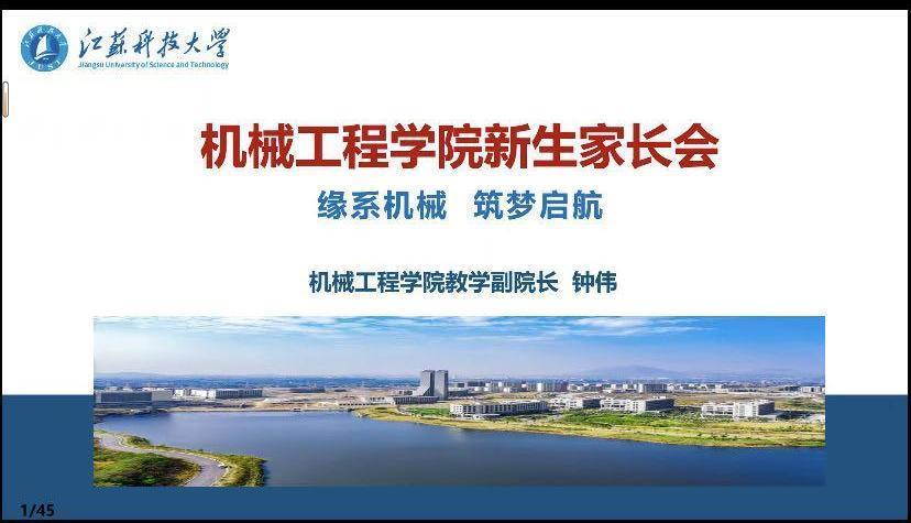 為了進一步強化家校聯(lián)動,形成教育合力,同時幫助家長更好地了解學生所學專業(yè)、發(fā)展前景等,江蘇科技大學機械工程學院于2023年9月14日下午14點,召開了2023級本科新生線上家長會。本次會議由機械工程學院副院長鐘偉教授主講,輔導員朱志賢老師主持,新生家長四百余人參加。