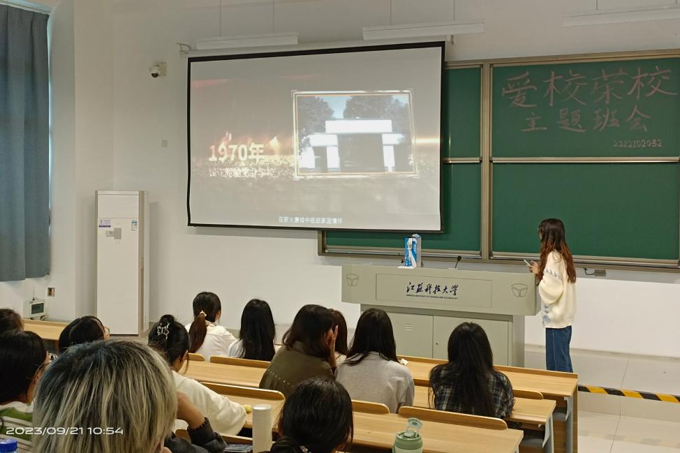 為了慶祝江蘇科技大學辦學90周年華誕,進一步加強班級學生對學校的認知和歸屬感,激發學生的愛校榮校情懷,機械工程學院2022級工業設計專業于9月21日上午開展了“愛校于心,榮校于行”主題班會,旨在讓“愛校”成為一種行為習慣,讓“榮校”成為一種文化自覺,更讓“興校”成為江科大師生共同的使命擔當。本次班會由班長徐嘉嶺、劉顆主持,輔導員李南南及全專業61名學生參加。