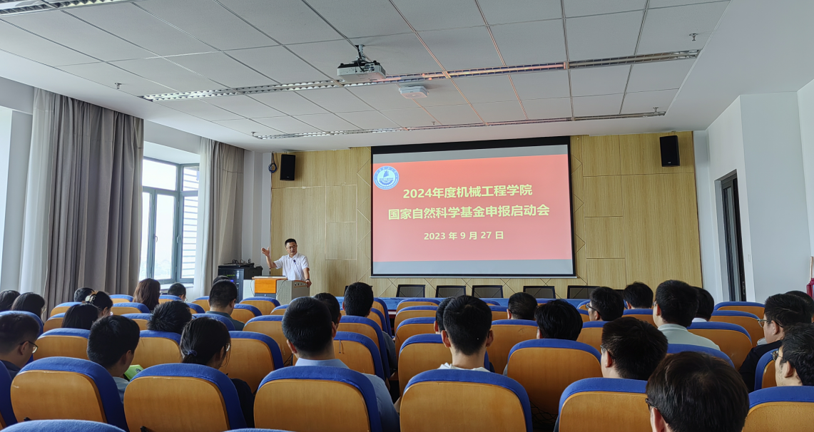 2023年9月27日,機械工程學院在學術報告廳召開了2024年度國家自然科學基金項目申報啟動會。機械工程學院黨委副書記、副院長(主持工作)張建作重要講話,特邀胥國祥教授、馮曉明副教授作國家自然科學基金項目申報交流與經驗分享,全體基金申報人員參加了啟動會。會議由機械工程學院副院長李磊主持。