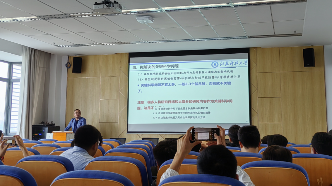 啟動會上,胥國祥、馮曉明分享了個人申報國家自然科學基金的心得體會。胥國祥從評審專家的角度,講解了基金選題、撰寫規范及注意事項,詳細分析了基礎理論問題與工程問題的不同,特別強調選題時注意研究方向的選擇。馮曉明結合個人青年基金與面上基金申報,重點介紹了基金選題、立項依據、研究內容、關鍵科學問題及創新性的關聯與不同,強調基金撰寫應“有限目標、抓住關鍵、重點突破、力求創新”。