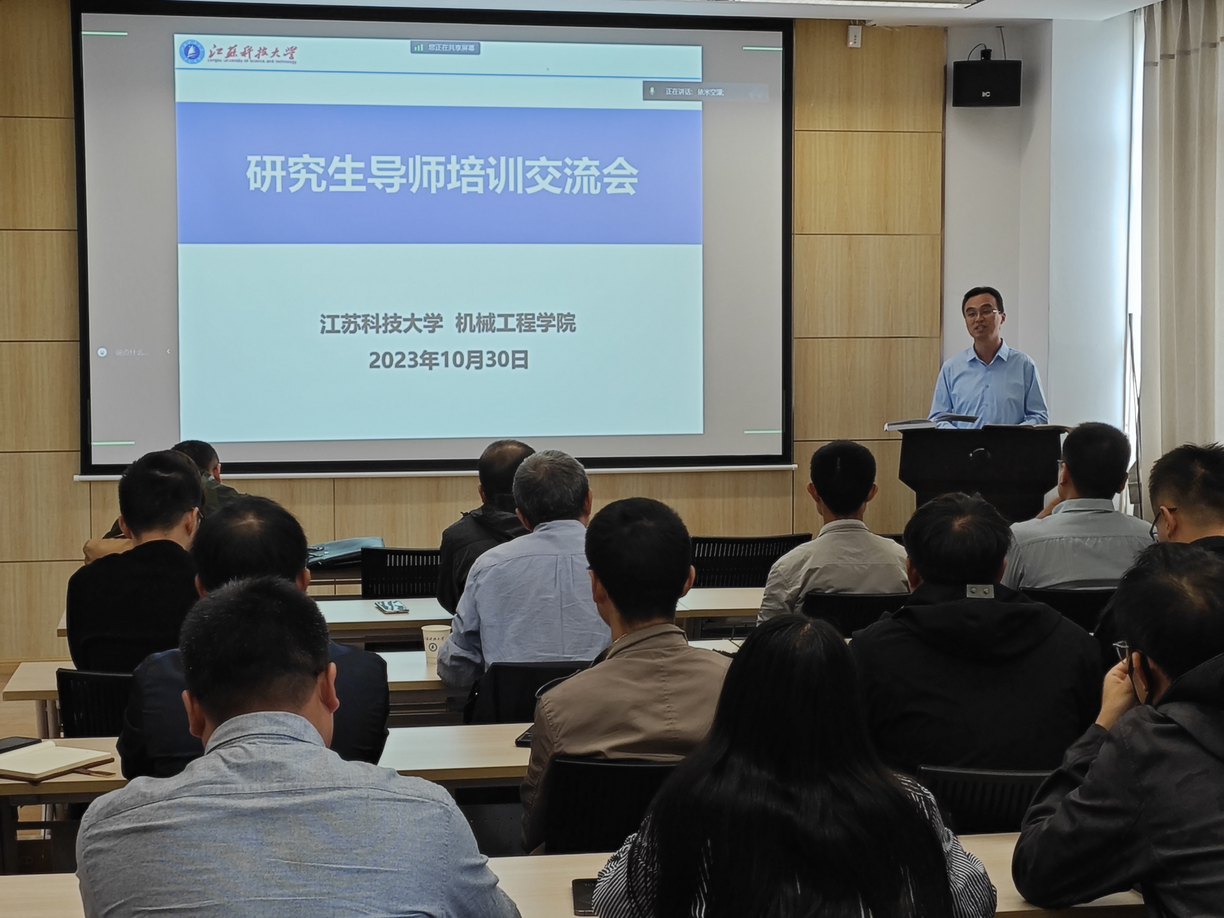 會上,李磊從導師的地位與使命、導師的職責和素質要求、如何做好研究生導師三個方面進行了匯報交流,重點解讀了《江蘇省研究生導師職業道德規范“十不準”》、《研究生導師指導行為準則》和《江蘇科技大學關于全面提升研究生培養質量的指導意見》等文件,強調新晉導師應盡快轉變角色,牢固樹立“導師是研究生培養第一責任人”的意識,盡快成長為“優秀的研究生導師”。
