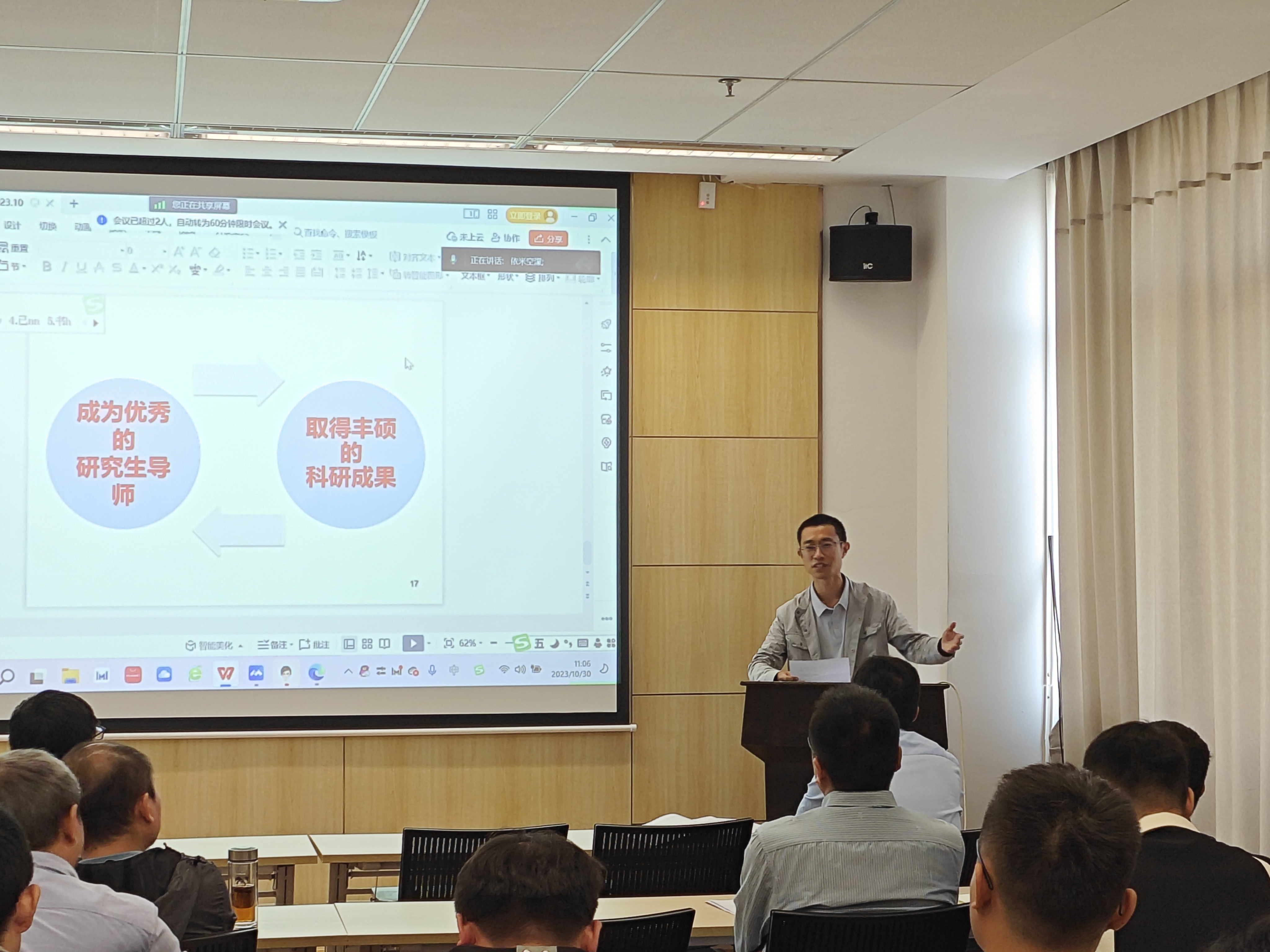 為進一步強化研究生導師立德樹人職責,提升研究生指導水平和能力,10月30日上午,機械工程學院在447會議室召開2023年度新晉研究生導師培訓交流會,部分研究生導師代表以及近兩年新晉導師出席會議,會議由副院長李磊主持。