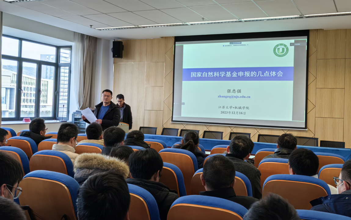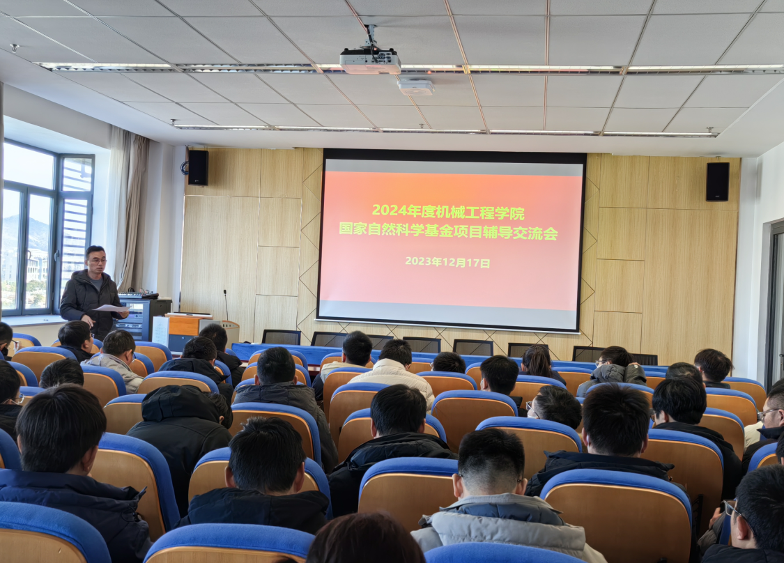 2023年12月17日,機械工程學院召開國家自然科學基金申報輔導交流會,會議邀請江蘇大學張忠強教授作專題講座,同時邀請十余位院內專家開展交流輔導。機械工程學院院長張建、副院長李磊以及全體基金申報人員參加會議。會議由張建院長主持。