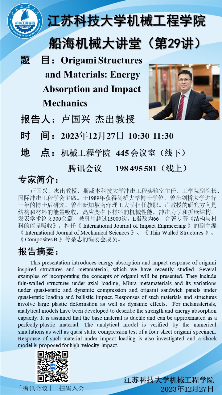 學(xué)術(shù)報(bào)告——Origami Structures and Materials:Energy Absorption and Impact Mechanics