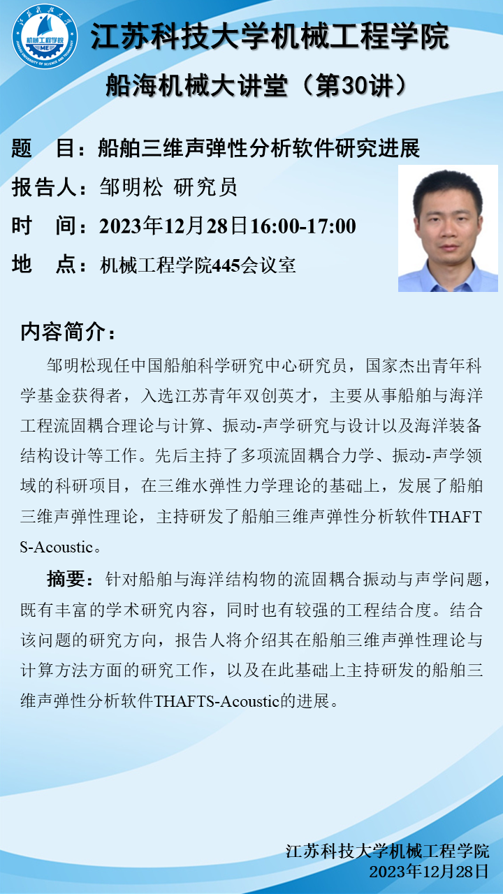 學(xué)術(shù)報(bào)告——船舶三維聲彈性分析軟件研究進(jìn)展