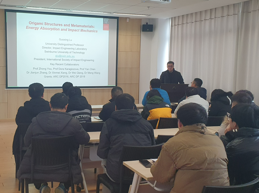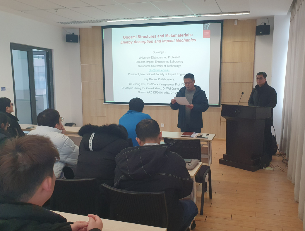 2023年12月27日,斯威本科技大學盧國興教授應邀以“能量吸收與沖擊力學”為主題做了精彩的線下講座。機械工程學院院長張建主持本次講座,機械工程學院部分青年教師、研究生在學院445學術報告廳或在線參加了講座。