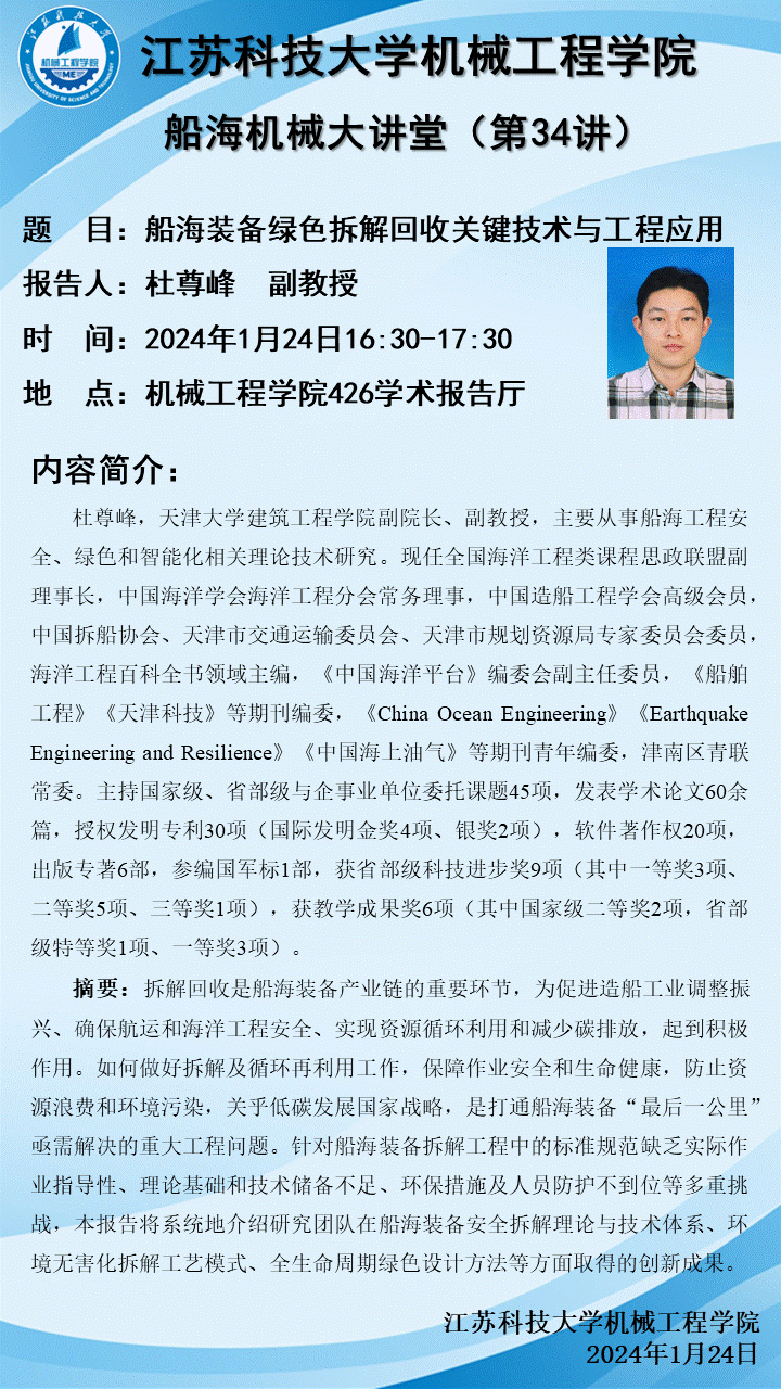學術報告——船海裝備綠色拆解回收關鍵技術與工程應用