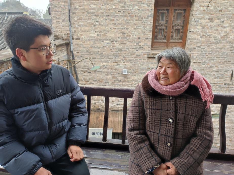 金宇成同學(左一)和奶奶聊天 拍攝:劉士鑫