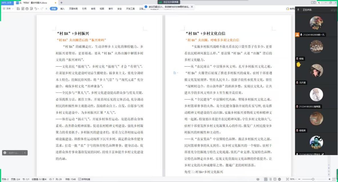 “村BA”的爆火也是鄉(xiāng)村振興的取得優(yōu)秀成果的重要表現(xiàn)形式之一。通過此次云調(diào)研實踐活動,小組成員們深刻領(lǐng)悟到了鄉(xiāng)村振興戰(zhàn)略的強大精神內(nèi)核,明白鄉(xiāng)村振興除了拉動經(jīng)濟發(fā)展外還要注重鄉(xiāng)村文化建設(shè),注重村民的精神風貌,堅定文化自信,更激勵了小組成員在日后的學習生活中刻苦努力,用自己的實際行動推動中華優(yōu)秀傳統(tǒng)文化的創(chuàng)新性發(fā)展,解鎖鄉(xiāng)村文化的“振興密碼”,積極投入到鄉(xiāng)村振興中去,凝聚青年磅礴力量,為鄉(xiāng)村文化振興注入內(nèi)在活力。