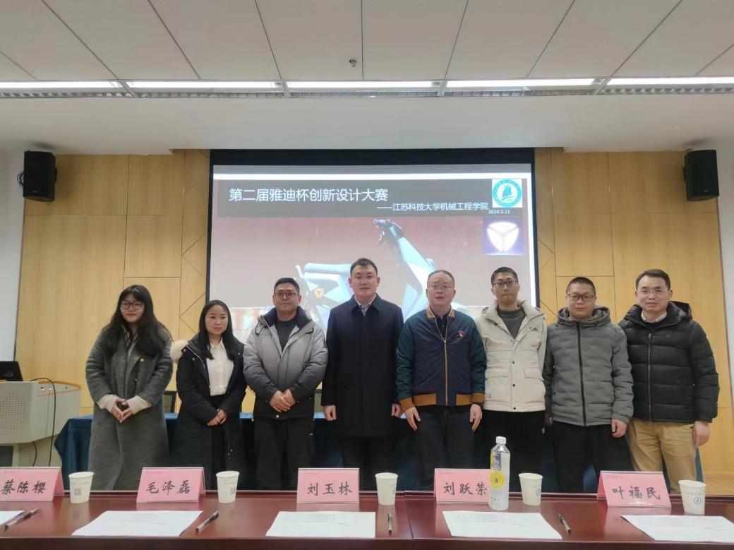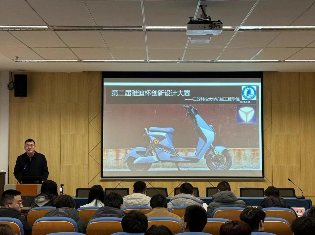 3月11日下午,江蘇科技大學第二屆“雅迪杯”創新設計大賽,在長山校區機械工程學院426會議室舉行,此次比賽共有100余名本科生、研究生參加。雅迪集團招聘負責人蔡陳櫻、技術部長劉躍榮、高級工程師毛澤磊、劉玉林、校招HR孟真巧作為雅迪集團代表蒞臨比賽現場,機械工程學院黨委副書記譚海波、專業教師葉福民參加此次設計大賽。機械工程學院團委書記李文達主持比賽。