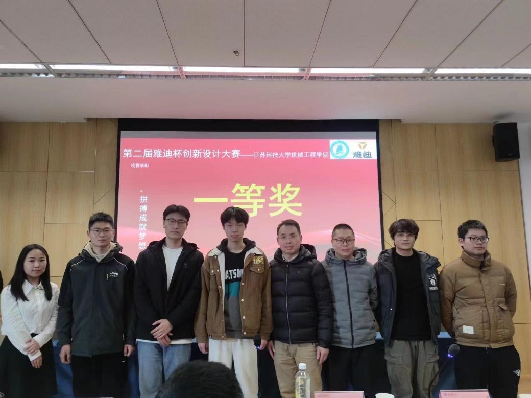 經過激烈的比賽,最終評選出8支獲獎團隊,到場嘉賓為獲獎同學頒獎并合影留念。此次比賽不僅培養了大學生創新意識、表述和團隊協作能力,更加強了校企之間的合作聯系,更好的幫助同學們了解企業,為今后高質量就業打好基礎。至此,江蘇科技大學第二屆“雅迪杯”創新設計大賽圓滿結束。