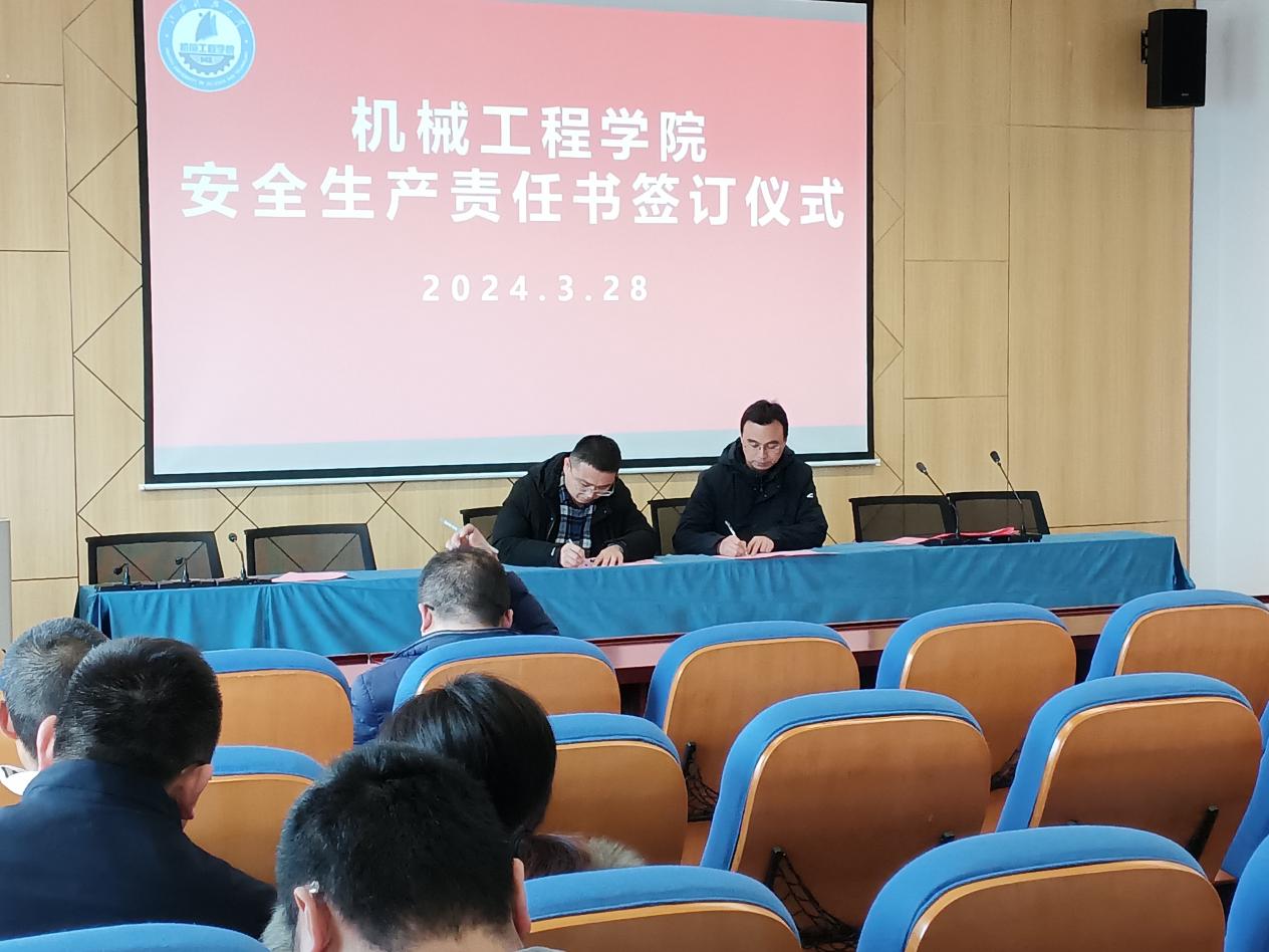2024年3月28日下午,機械工程學院召開安全管理宣講會議及安全生產責任書簽訂儀式,機械工程學院副院長李磊主持會議,學院安全員張維光宣講安全管理,學院黨委書記翟純純、黨委副書記譚海波、各實驗室負責人、近三年入職教師、研究生代表參加此次會議。