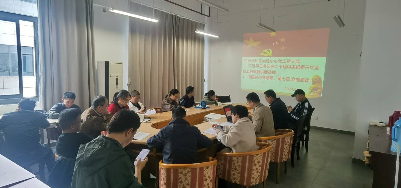 全體師生黨員重點學習了習近平總書記在二十屆中央紀委三次全會上的重要講話精神和《中國共產黨章程》(第七章黨的紀律)的內容,全體黨員結合自身實際就如何筑牢思想防線,堅守紀律紅線,把遵規守紀刻印在心,內化為日用而不覺的言行準則展開了熱烈討論。