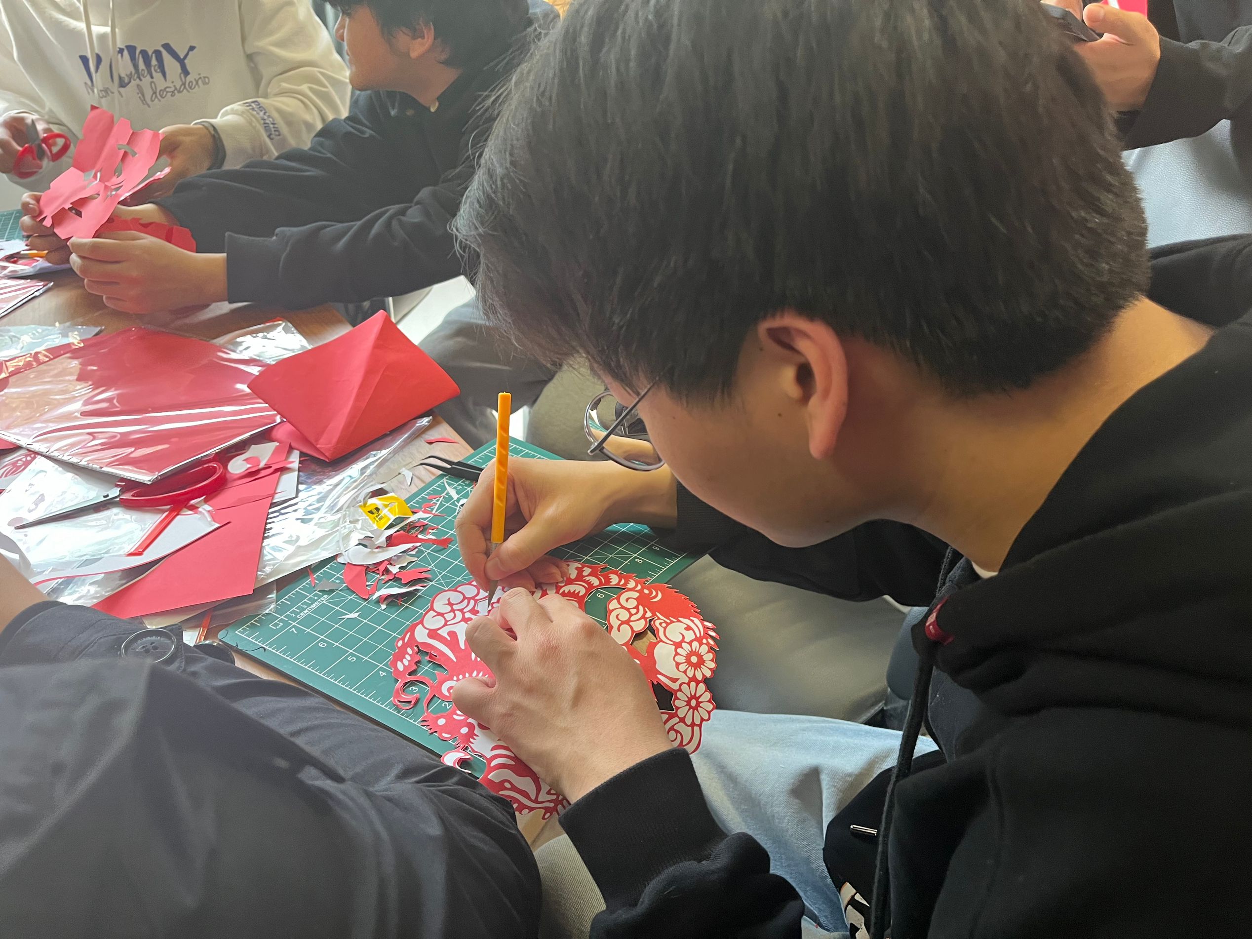 首先,心理委員張子冉同學(xué)首先向大家介紹了剪紙的歷史與意義,向同學(xué)們展示了各種各樣的剪紙,讓同學(xué)們能夠更好地了解剪紙的藝術(shù),能夠親身感受這只存在大多數(shù)人記憶里的非遺文化。隨后,同學(xué)們跟隨著指導(dǎo),在這種愜意的氛圍之中慢慢的制作自己的剪紙。每個人都在精心制作自己挑選的剪紙,感受著中華文化的博大精深。在剪紙中,偶爾會發(fā)生意外,但是同學(xué)們都能一起解決問題。有的同學(xué)有一些自己難以裁剪的位置,就會有旁邊的同學(xué)幫助他一起制作;有的同學(xué)對于一些工具的使用存在錯誤,就會有同學(xué)前來分享自己的心得。每個人都交流彼此的作品以及制作的經(jīng)歷,在這種輕松快樂的氛圍之中,活動不知不覺走向了尾聲。