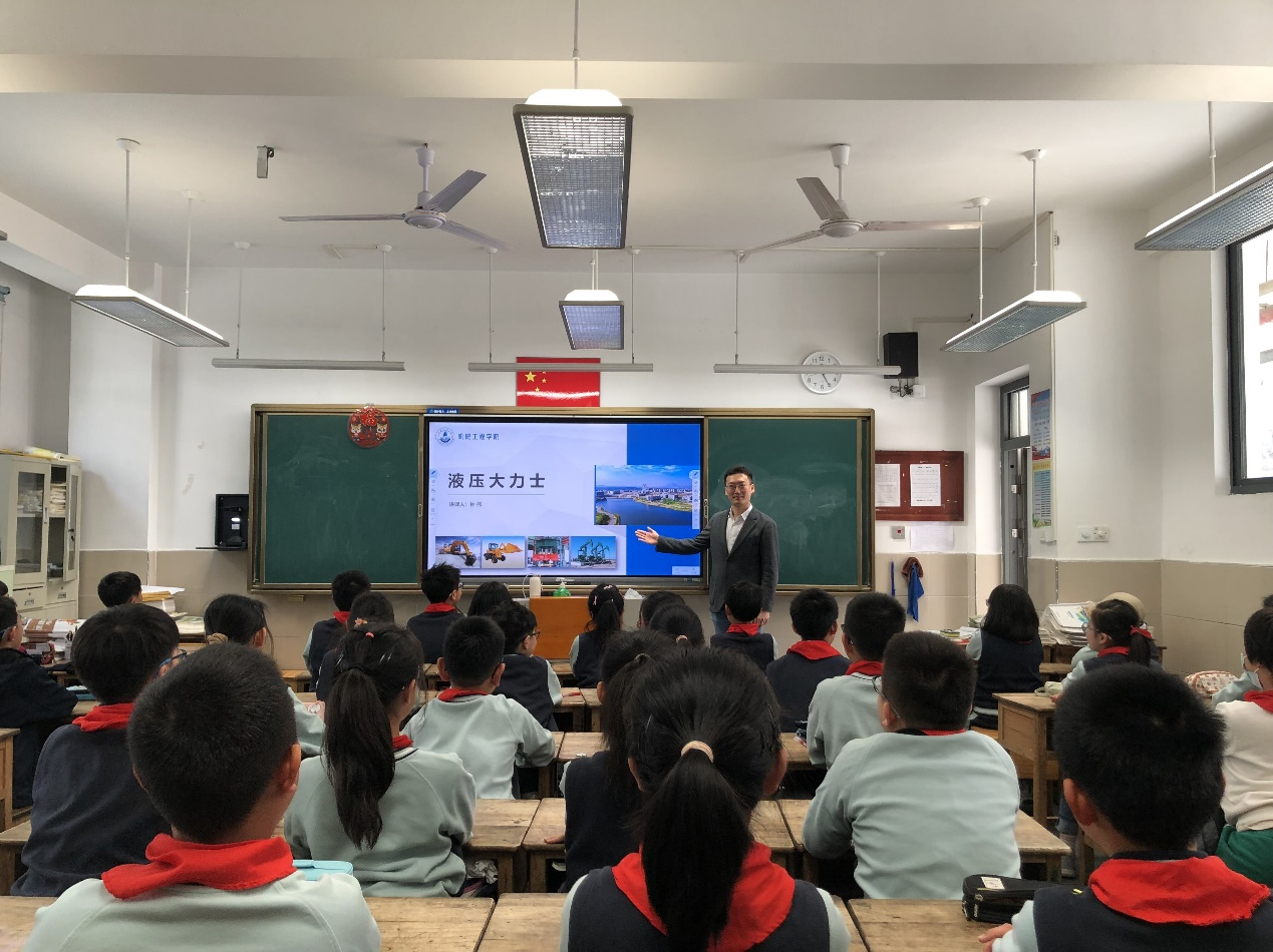 為有效助力“雙減”政策的落實,進一步普及科學知識、傳播科學思想,激發學生探索科學的興趣,促進學生全面發展,健康成長,4月29日,江蘇科技大學機械工程學院鐘偉教授受邀走進鎮江市紅旗小學四(2)班的課堂,給學生們帶來了一場生動有趣的科普講座,揭開了液壓技術的神秘面紗。