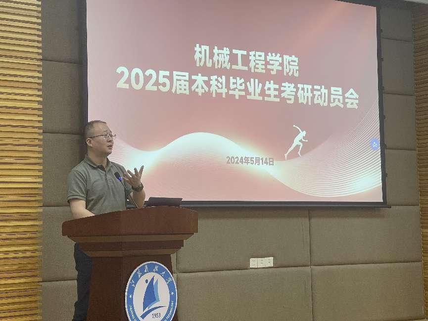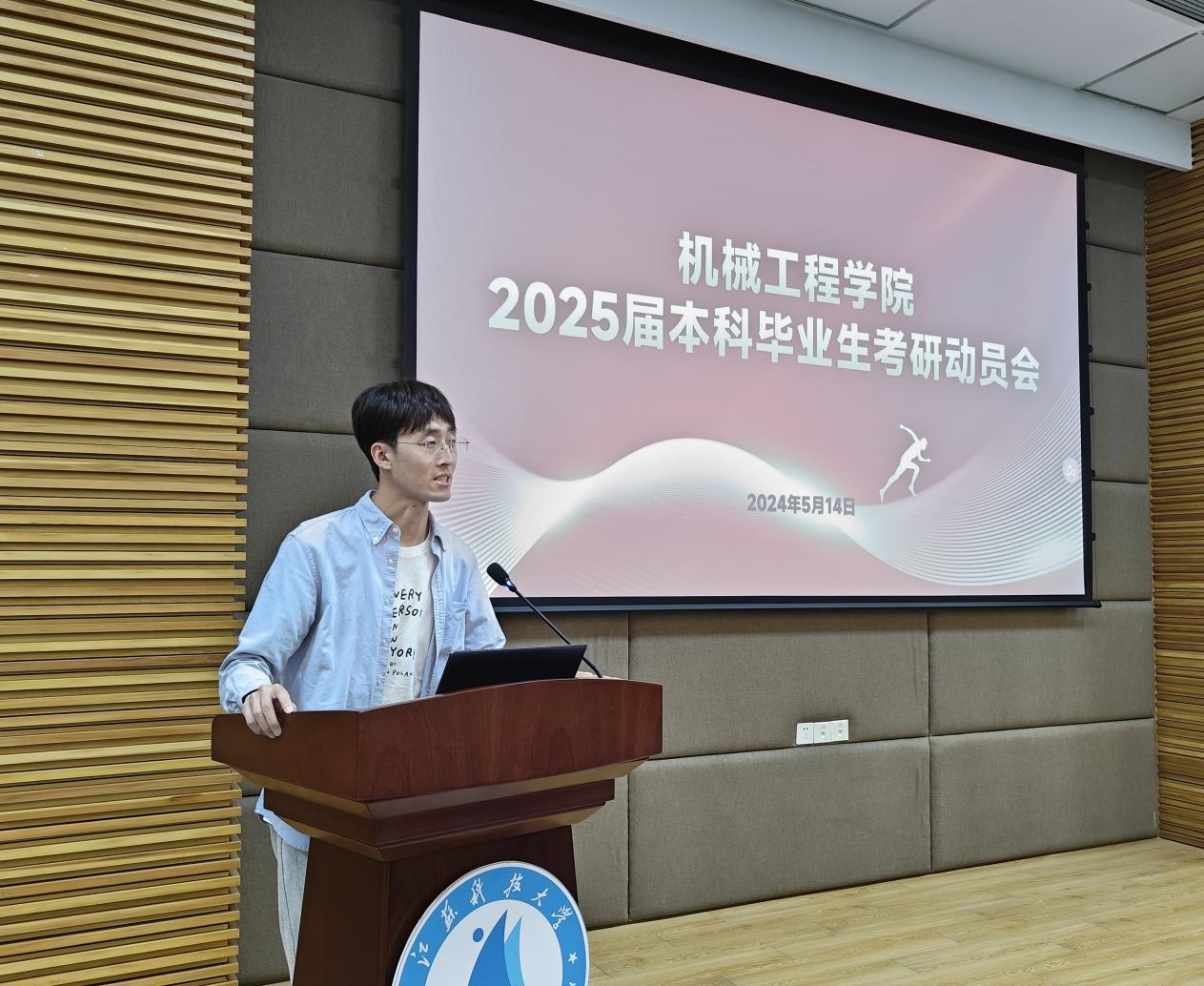 5月14日,機械工程學院在圖書館B101召開2025屆本科畢業生考研動員會。學院邀請我校校友、考研報考指導老師潘老師為考研學子做主題交流,學院黨委副書記譚海波做總結發言。本次活動由學院思政輔導員李福來老師主持,2025屆考研學子代表參加本次活動。