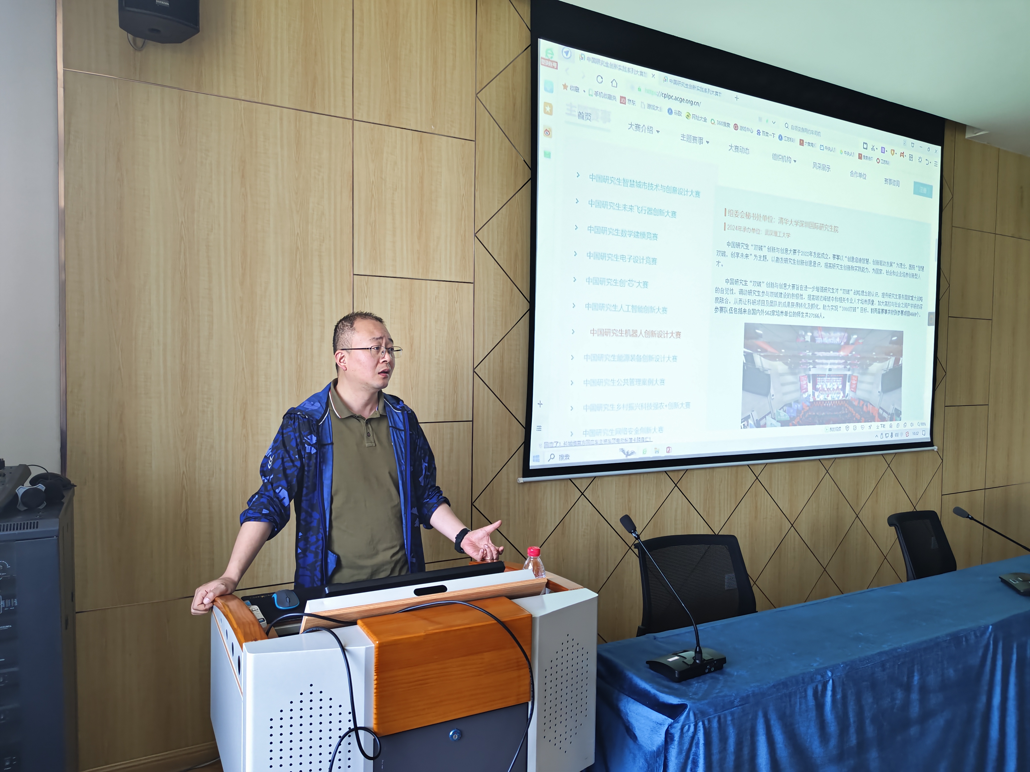 最后機械工程學院黨委副書記譚海波對大會進行總結致辭。譚書記給參賽同學提出三點建議:第一,要關注賽事官方網站,及時查閱了解官方公告和信息,我們要低頭做事也要抬頭看路,這樣才能行得穩走得直。第二,比賽種類有很多,同學們不要拘泥于一類賽事,機械學科可以適應多種賽事,要學會對科研成果的整理,廣泛參與多條賽道的角逐。第三,參加比賽就要認真對待,積極投入,謙虛向師兄師姐指導老師請教學習,從一而終,堅定信心,將比賽進行到底。最后譚書記對于今年參加比賽的同學表示祝福和期待,希望參與比賽的項目成員可以取得優異的成績。