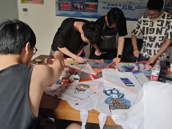 活動開始,心理委員高明首先向大家介紹了風箏的歷史與意義,向同學們展示了各種各樣的風箏作品,讓同學們能夠更好地了解風箏的藝術與內涵,同時親身感受記憶里的非遺文化。同學們在“風箏創作”環節中,用簡單的模具和豐富的染料,將自己的創意和情感融入風箏制作中。他們親手制作獨一無二的風箏作品,通過色彩的碰撞與融合,表達內心的情感。李南南老師引導大家分享創作背后的故事,幫助同學們在藝術創作中釋放壓力,增強自我認知。在“非遺文化分享”環節,大家互相欣賞,交流心得,共同感受非遺文化的魅力。這些富有創意的作品,不僅展現了同學們的才華,也傳遞了對傳統文化的敬意。最后,同學們在長山校區西操場放飛風箏,放飛心情,收獲快樂的一天。