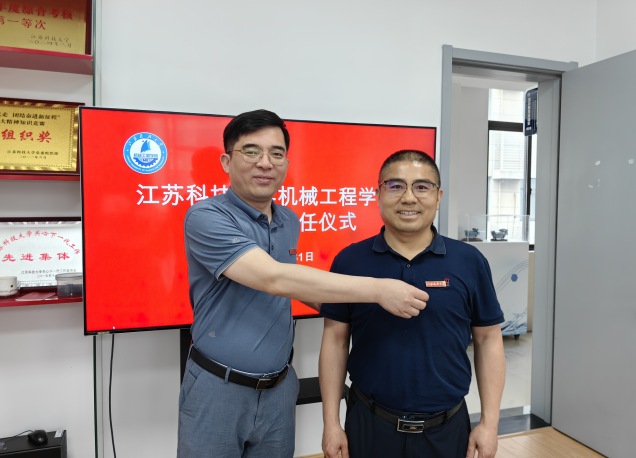聘任儀式上,張建院長詳細介紹江蘇科技大學和機械工程學院近年來的發展情況,對嚴忠勝教授的加入表示熱烈的歡迎。學院黨委書記翟純純為嚴教授佩戴校徽。嚴忠勝表示,他時常懷念在江蘇科技大學度過的美好時光,非常感恩母校對他的培養和塑造。他說,江蘇科技大學就像一束光,溫暖和關懷源源不斷,照亮著他人生前進的方向,本次受聘為江蘇科技大學兼職教授,他倍感榮耀、倍加珍惜,將不負期望,認真履行立德樹人的根本任務,在人才培養、科學研究、社會服務等方面發揮專長,積極為江蘇科技大學高水平大學建設和機械工程學院高質量發展貢獻個人力量。