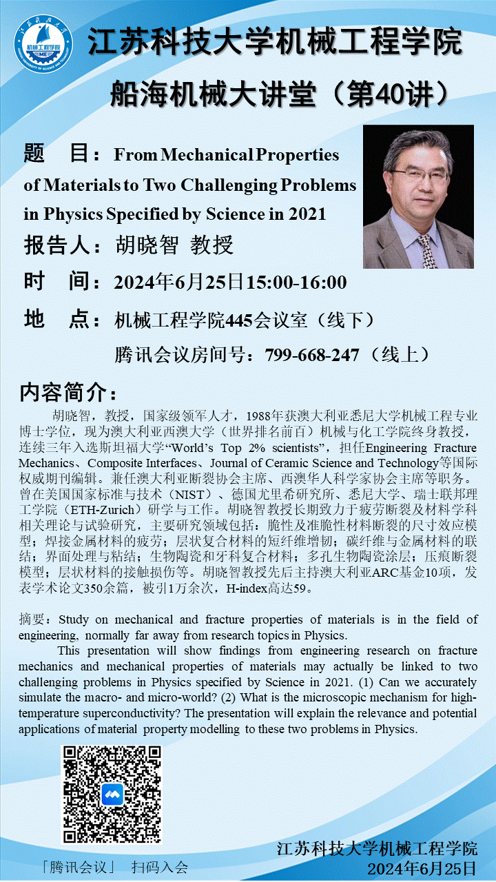 學術報告——From Mechanical Properties of Materials to Two Challenging Problems in Physics Specified by Science in 2021