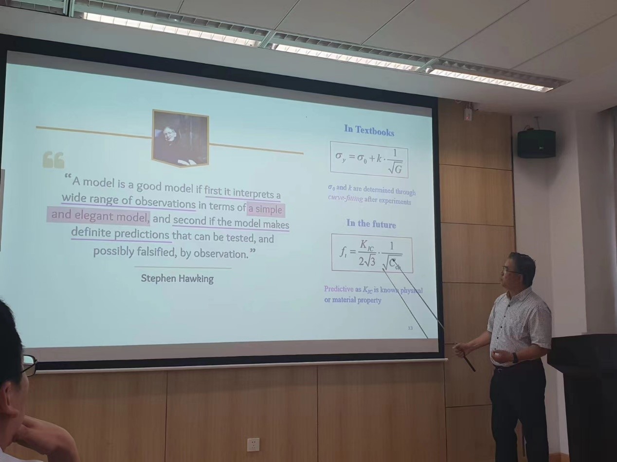 胡曉智教授以工程研究中涉及的物理問題為切入點,分享了自己關于斷裂力學理論的研究成果,簡明地闡述了如何通過邊界效應模型預測材料在彎曲載荷下的表現(xiàn),并展示了該模型在混凝土、木材、碳纖維、單晶硅等多種材料上的應用和最新科研進展,證明了其從宏觀到微觀的普適性,指出了其在工程實踐中的巨大潛力。同時,胡教授詳細闡述了原子層面的應力應變模型,為高溫超導的微觀機理提供了創(chuàng)新的思考角度。胡教授強調科研工作者要思維開闊、持之以恒。