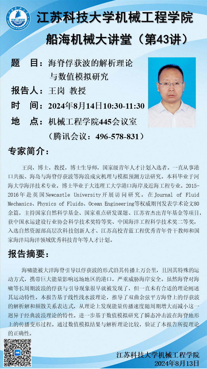 學術報告——海脊俘獲波的解析理論與數值模擬研究