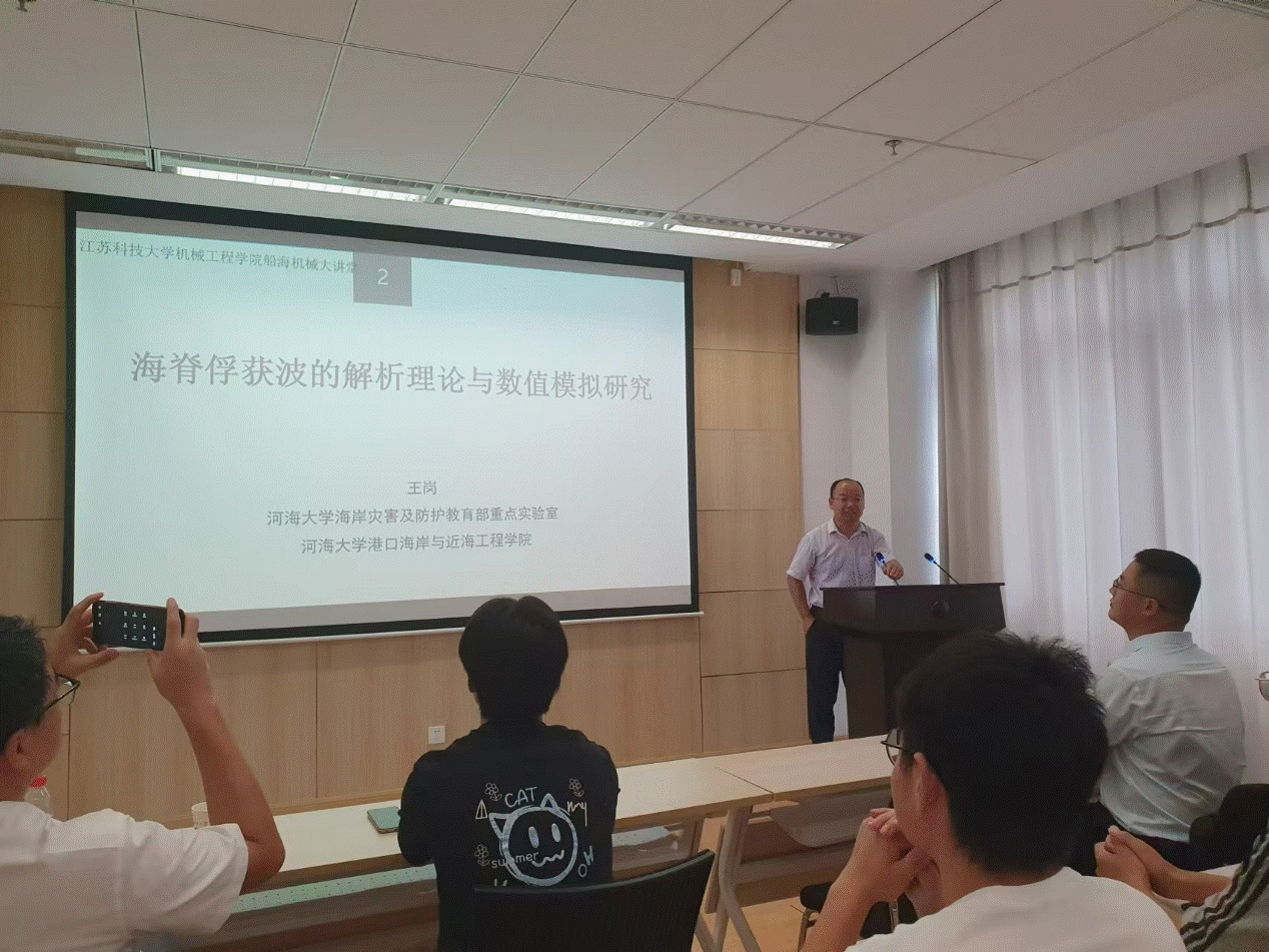 2024年8月14日,河海大學王崗教授應邀做客我院船海機械大講堂,在機械工程學院445會議室做了題為《海脊俘獲波的解析理論與數值模擬研究》的線上、線下混合講座。機械工程學院院長張建教授主持本次講座,院內外青年教師、研究生參加本次講座。