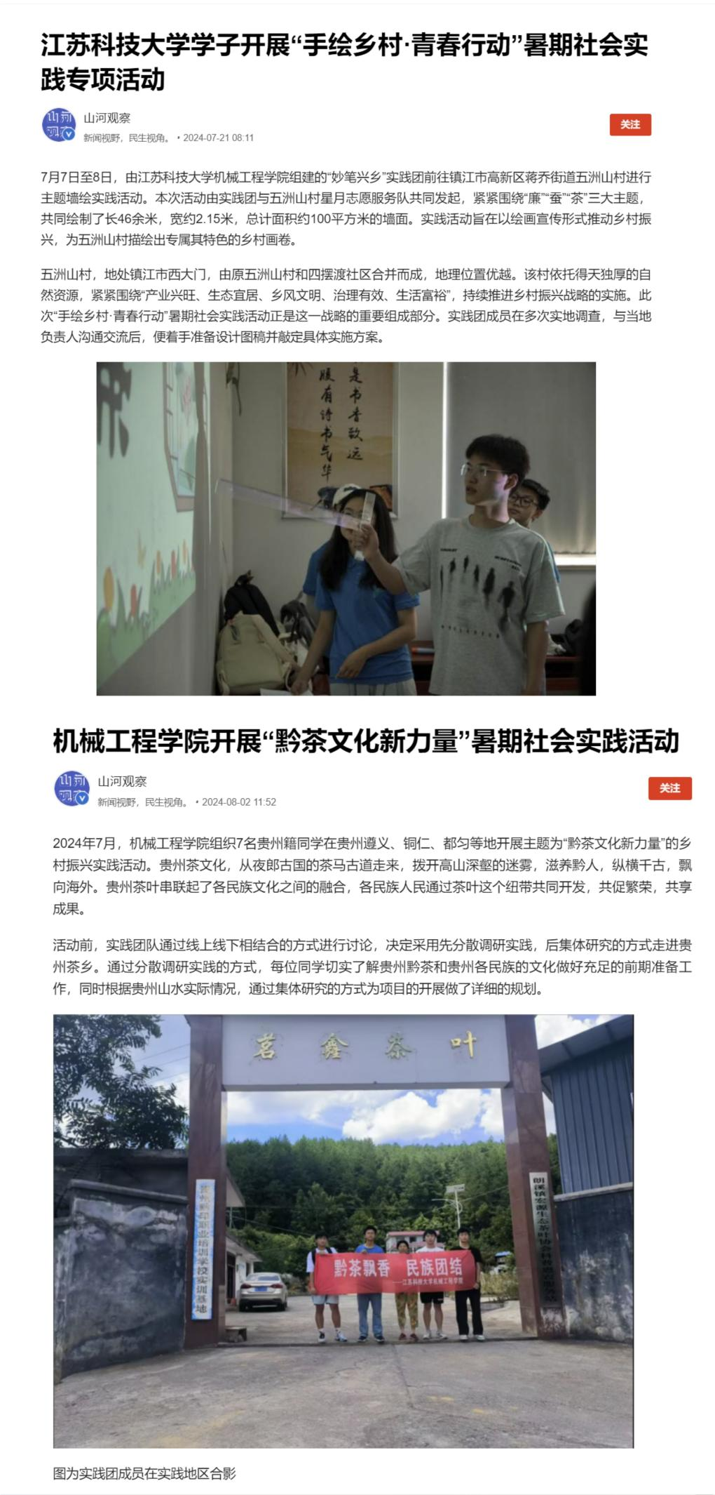2024年暑期社會實踐活動中,機械工程學院本科生、研究生全員參加,活動覆蓋率達到100%。我院先后組建了“妙筆興鄉”實踐團、“時光印記”實踐團、“星星之火”社會實踐團、“益康行”實踐團等110支團隊,數千名學生分別奔赴江蘇、貴州、廣西、黑龍江、河北等26個省、自治區、市,到紀念館、鄉村、學校、企業、社區等100余處實踐地,深入開展黨史學習、手繪鄉村、教育宣傳、助力環保、社區調研、志愿服務等內容豐富的實踐活動。